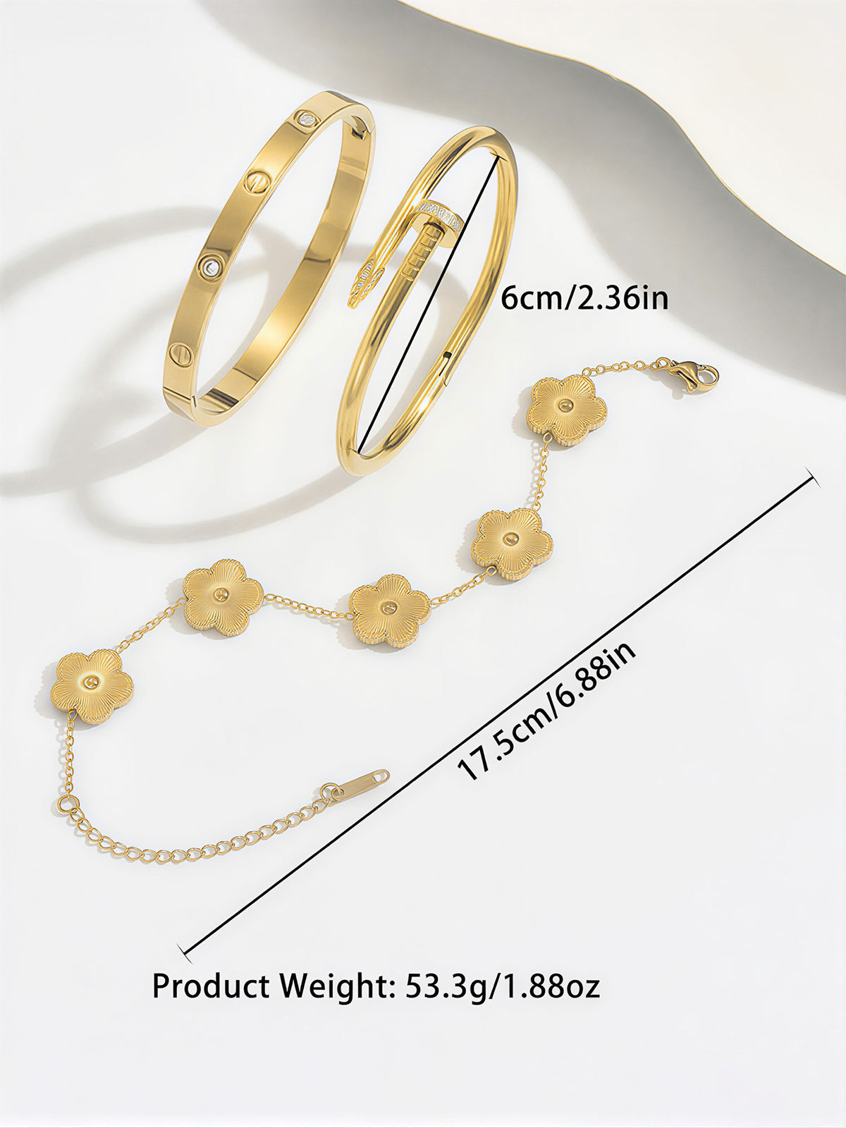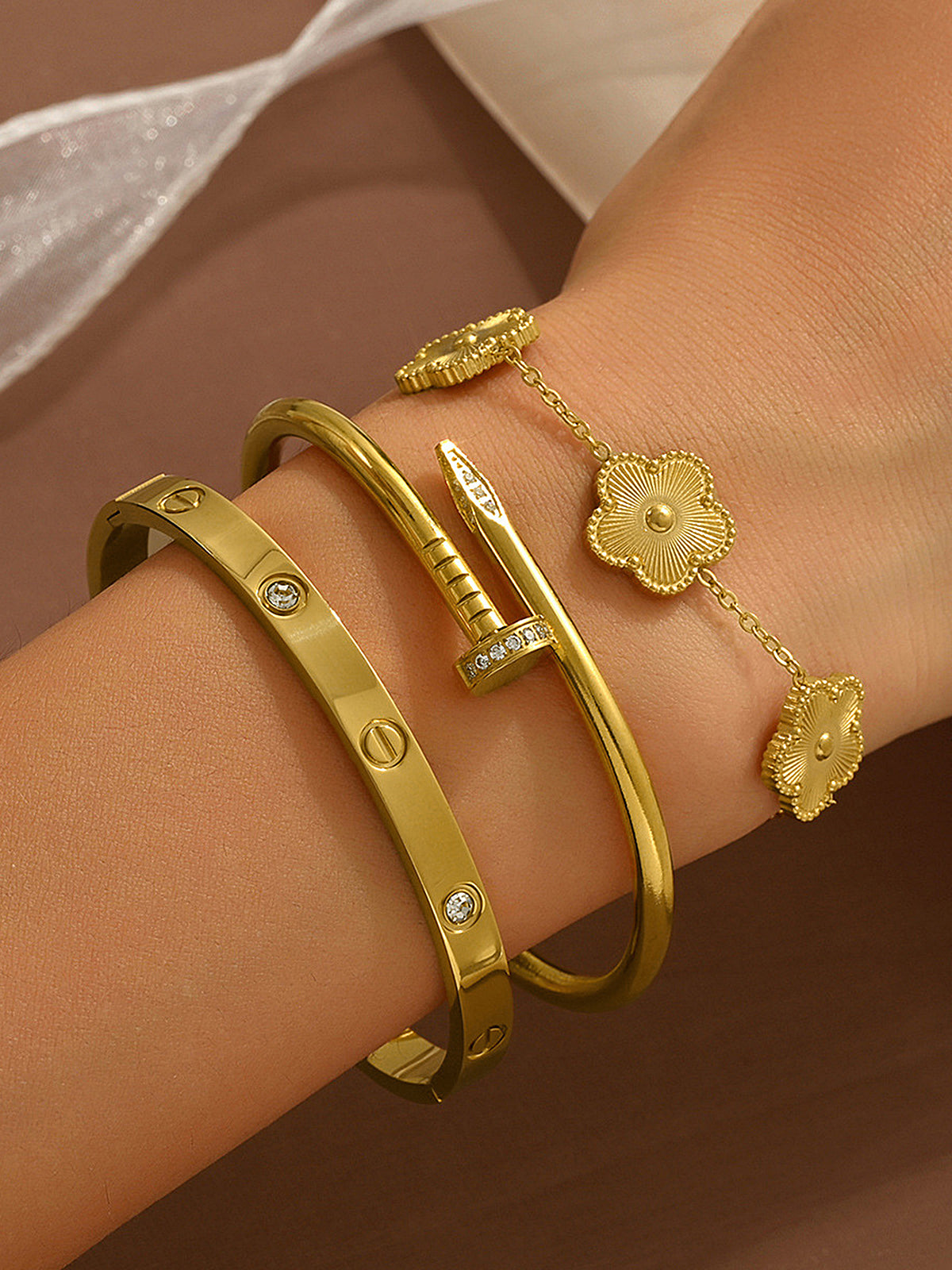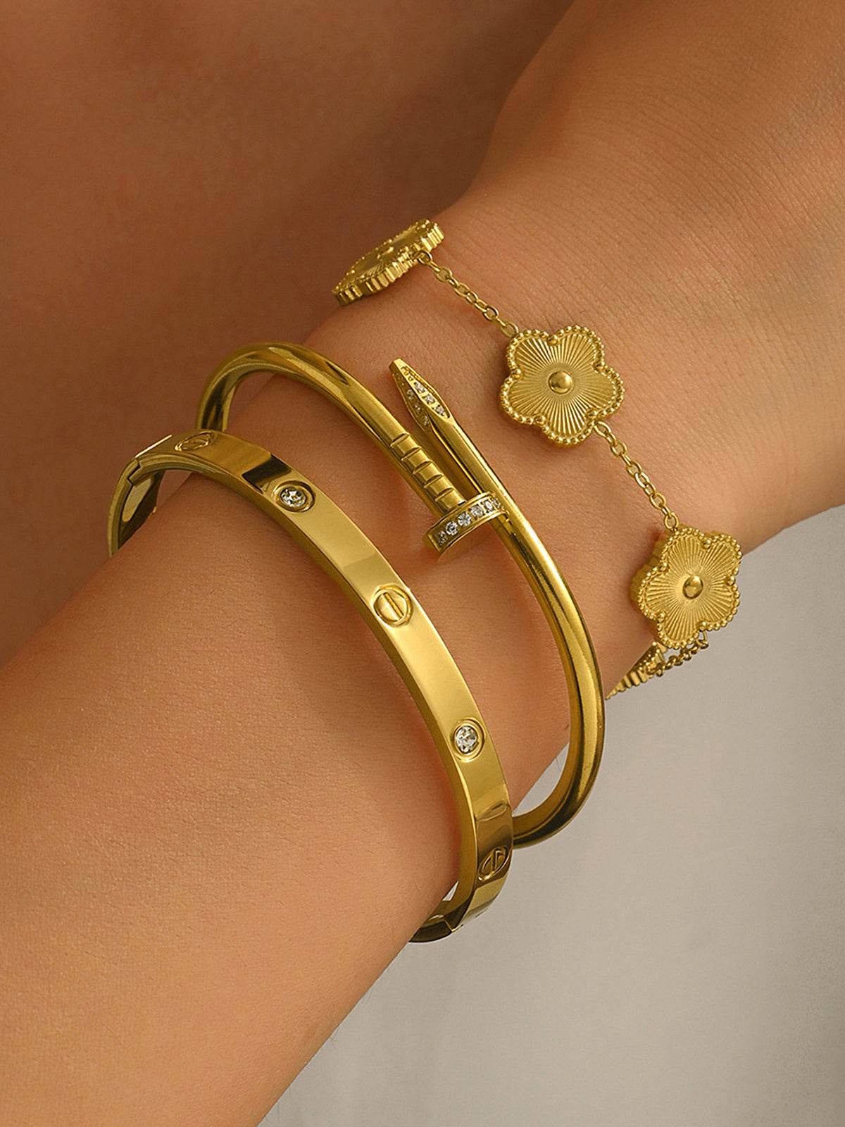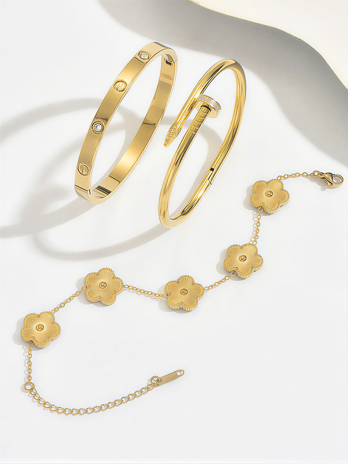3pcs Screw & Nail & Clover Bracelet Set
