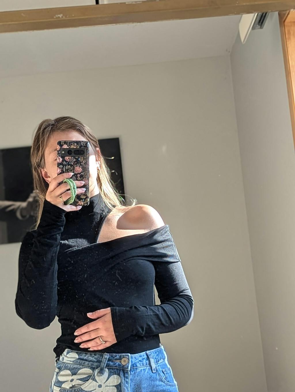Loved this top! Comfortable and sexy with the shoulder opening. Great to pair with dress leather shorts, jeans, or to dress casual. Runs a little small so size up!