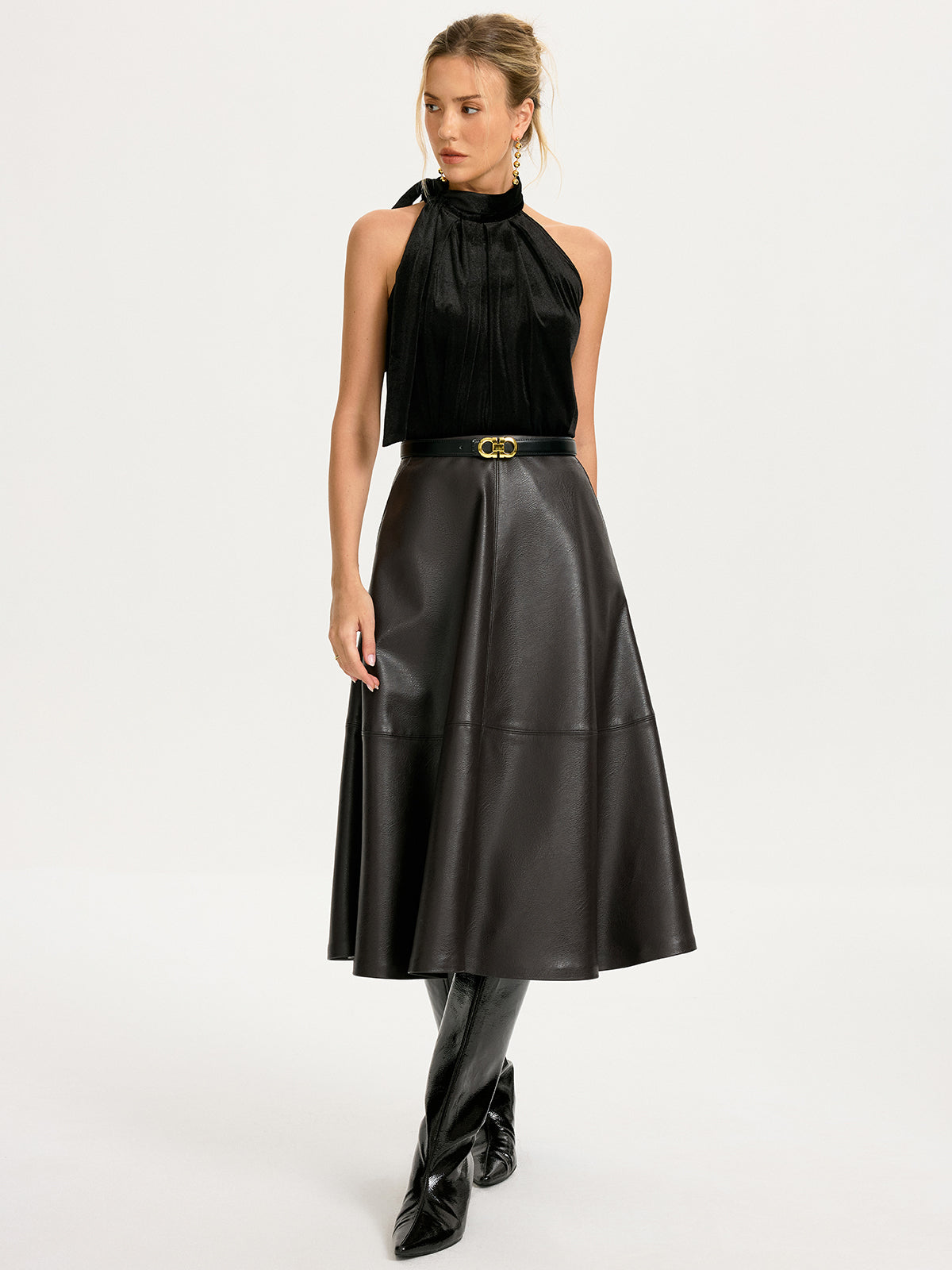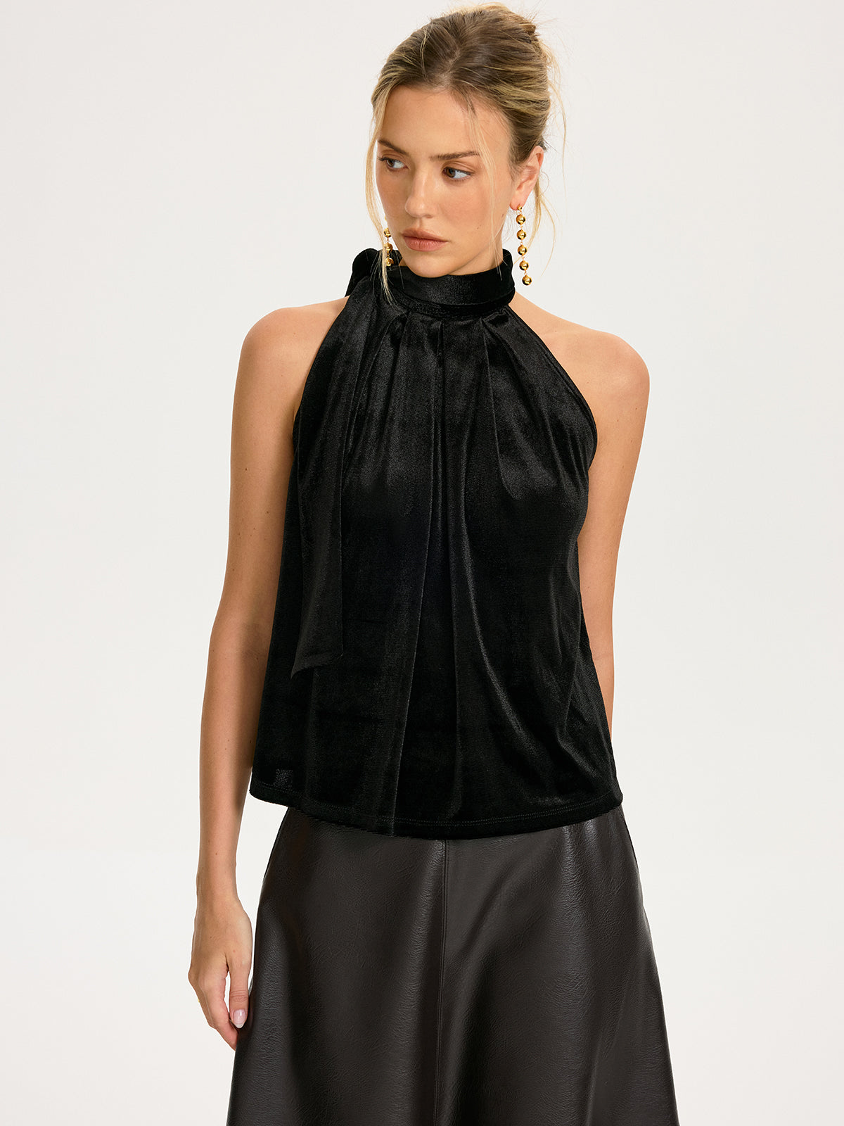 Tie-Neck Velvet Halter Top