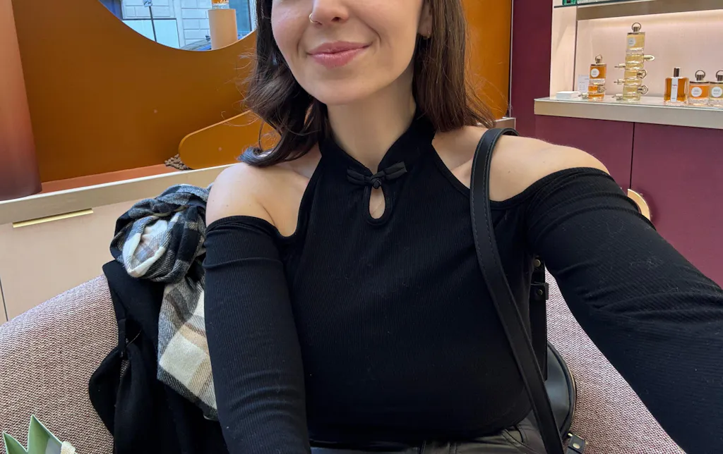 This is one of my go-to chic, black numbers. The material is thick and stretches enough that I don’t have to wear a bra or nipple covers. Many fabulous Parisians have complimented me in this top. For reference: Bust-35E, Ht:65in Wt: 139lbs