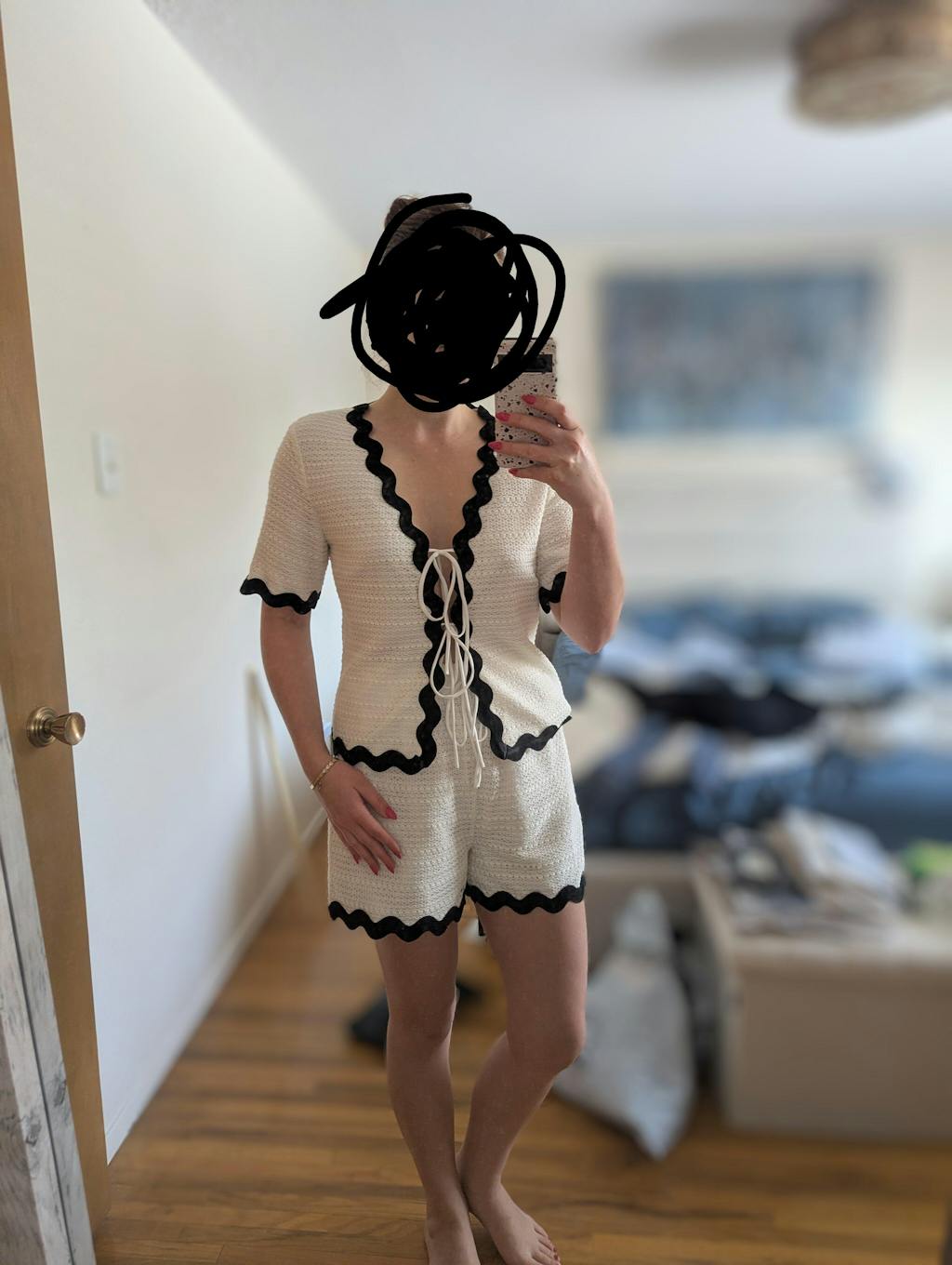 Love this contrast trim V neck set! Looks so sophisticated, yet is extremely comfy. Can dress up with kitten heels or down with sandals.
