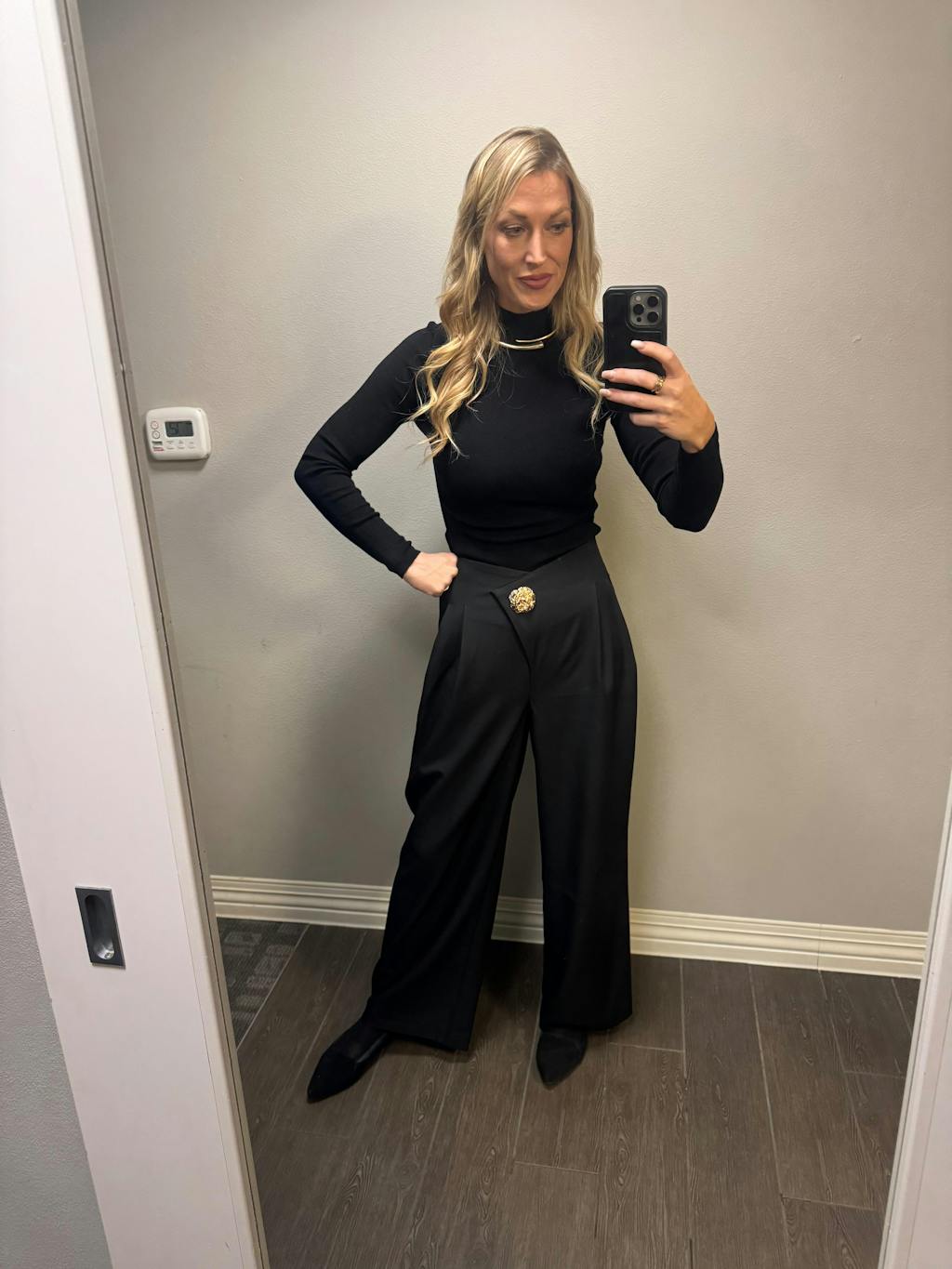 The waist cut is soooo flattering. The material is wrinkle resistant without being too heavy. I sized up to ensure a flowy fit and it was the right choice. I'm a US8 and ordered these in a L. I'm 5'1" and you can see in the picture they are a little long but nothing a little hem can't fix. Obsessed.