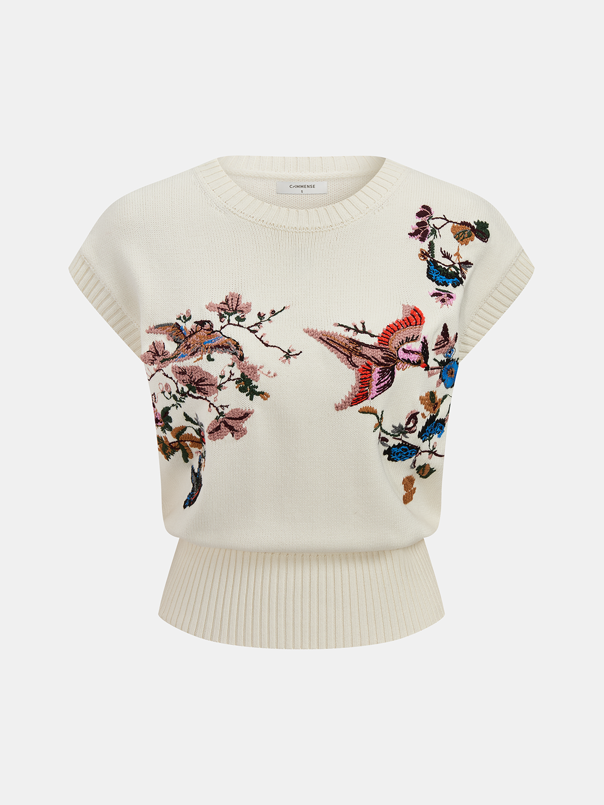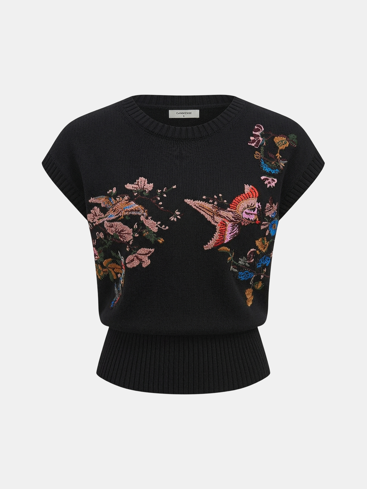 Embroidered Floral Bird Knit Vest