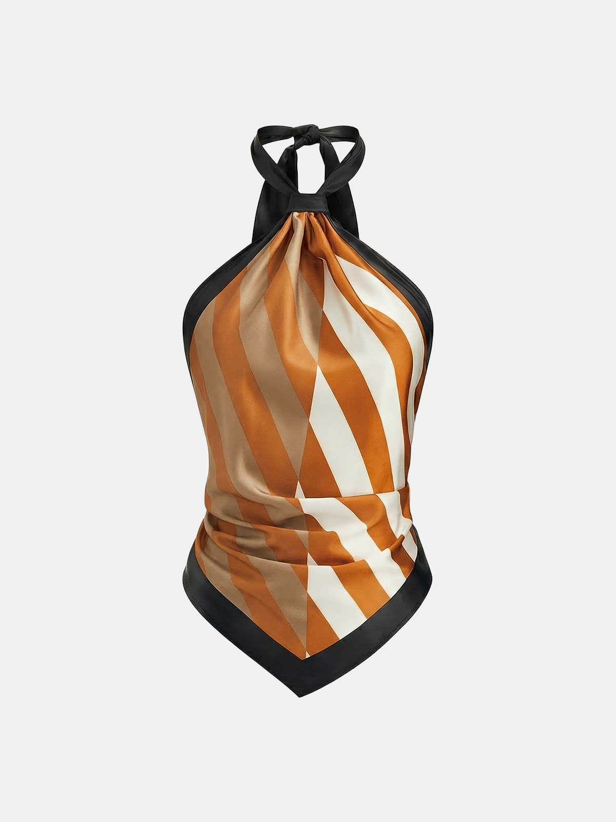 backless,casual,clothing,coll:sheer_bare-back,coll:tank_tops_camis,coll:tops,coll:vacation,coll:weekend_getaway,cross-over collar,geometric pattern,in_six_month,kerchief detail,minegence,multicolor,no,non-stretch,not_low_sales,oa251223002,olive,orange,regular,regular fit,satin,sleeveless,tank tops & camis,tops,twisted romance,vacation,women