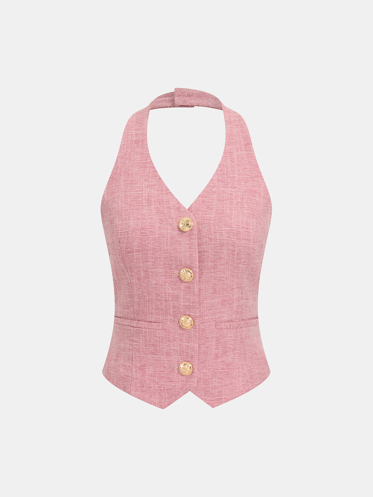 casual,clothing,coll:bottoms,coll:matching_sets,coll:vests,coll:wide_leg,corpcore,halter,in_six_month,metal detail,minegence,non-stretch,not_low_sales,oa251215017,pant sets,pink,regular,sets,sleeveless,women,woven fabric