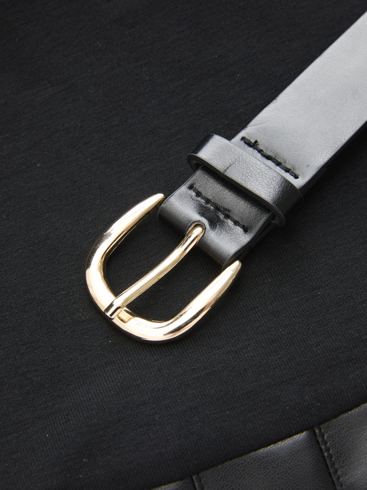 asymmetrical neck,belted,black,clothing,coll:dresses,coll:old_money,coll:vintage_fabrics,corpcore,date,dresses,faux leather,feminine,in_six_month,jersey,long sleeve,no,non-stretch,not_low_sales,oa251107097,patchwork,regular,regular fit,short,women