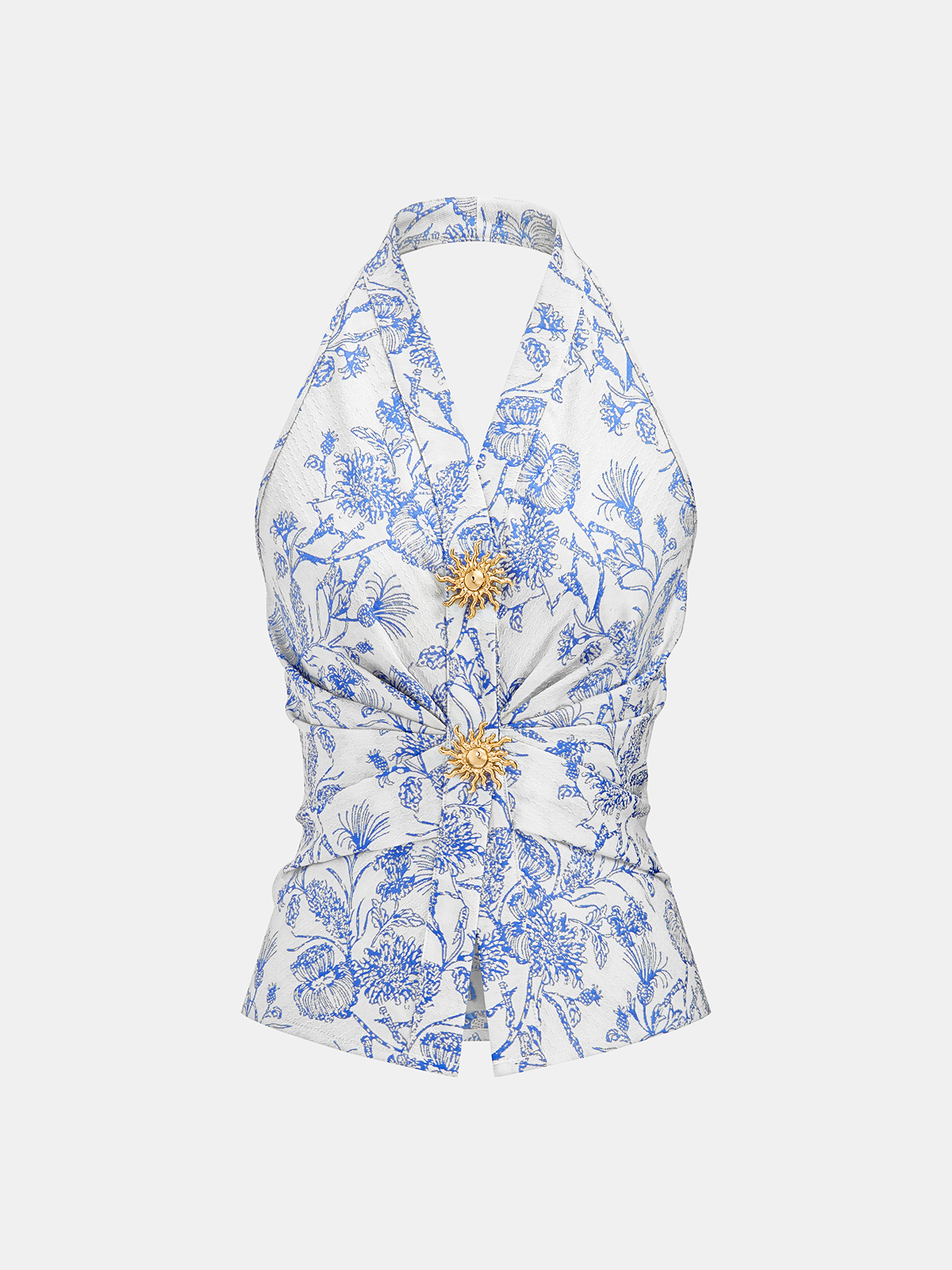 Floral Print Embellished Ruched Halter Top