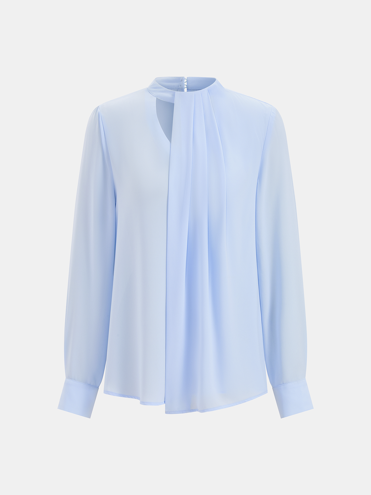 Keyhole Neck Pleated Long Sleeve Blouse