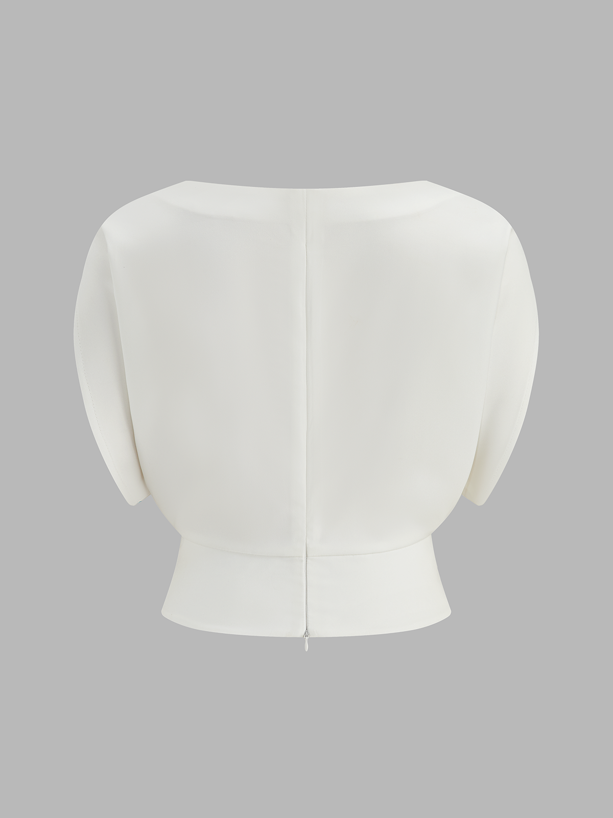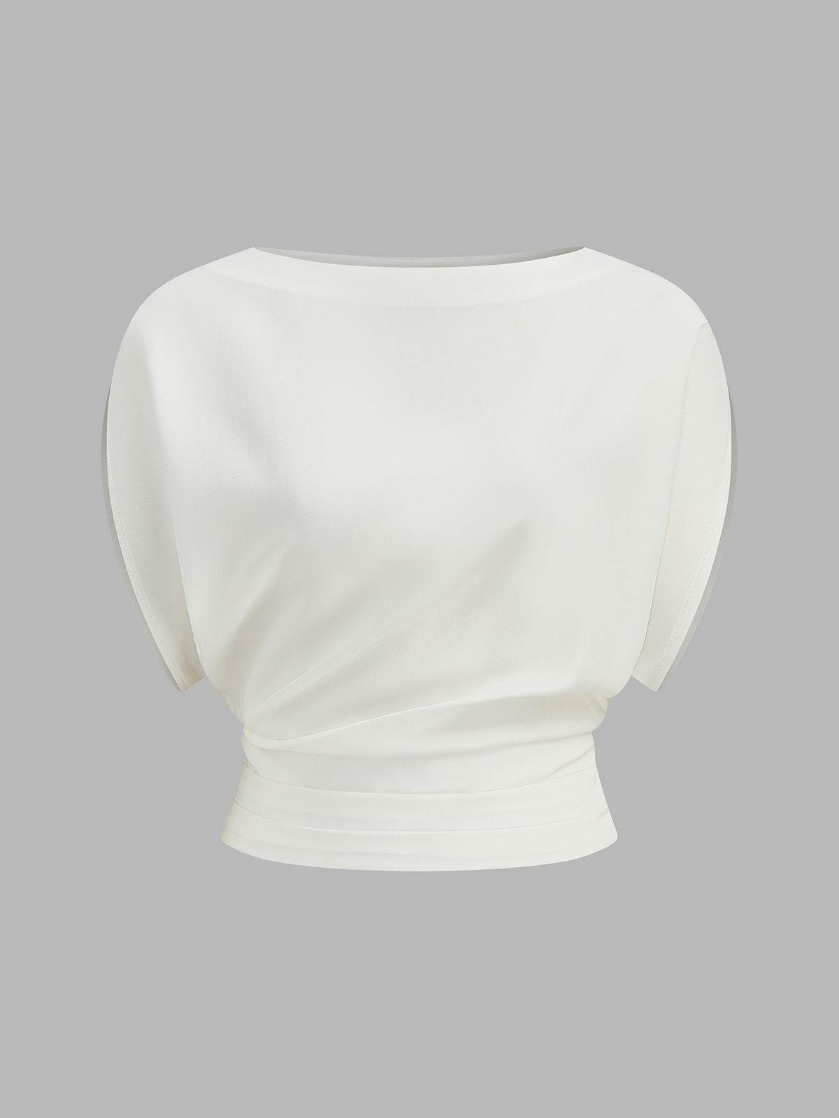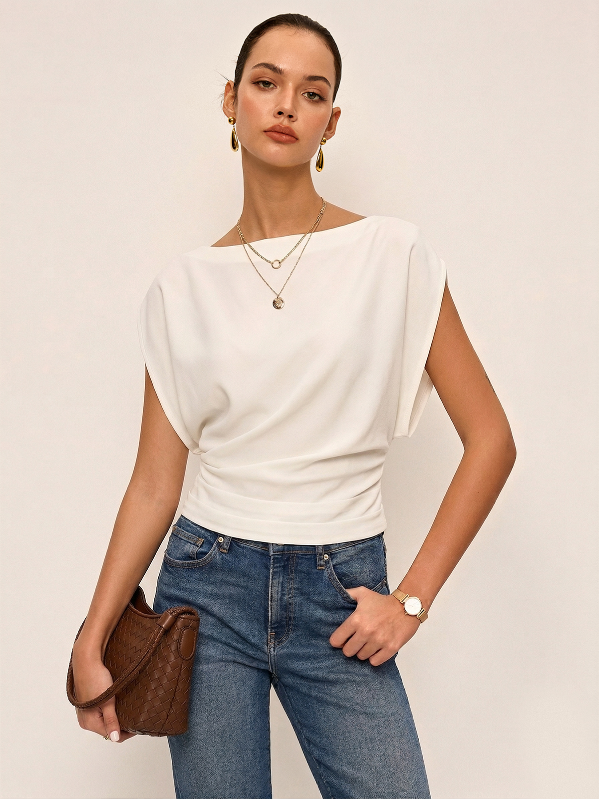 blouses,casual,clothing,coll:blouses_shirts,coll:tops,corpcore,crew neck,in_six_month,invisible zipper,minegence,no,non-stretch,not_low_sales,oa251204138,photo_ai,regular,ruched,shift,short sleeve,tops,white,women,woven fabric