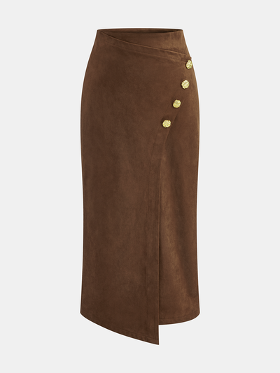 Metal Detail Suede Effect Asymmetric Maxi Skirt