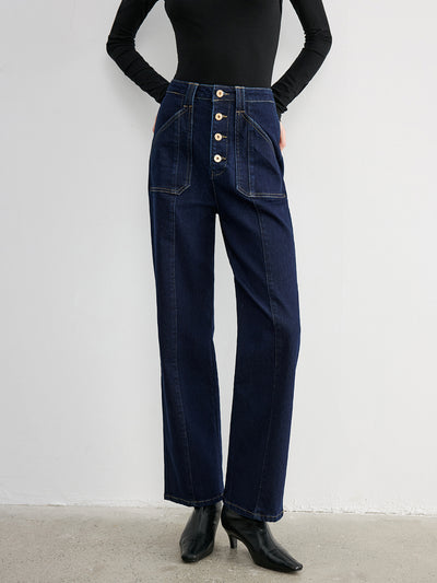 Button Placket High-Waist Straight-Leg Jeans