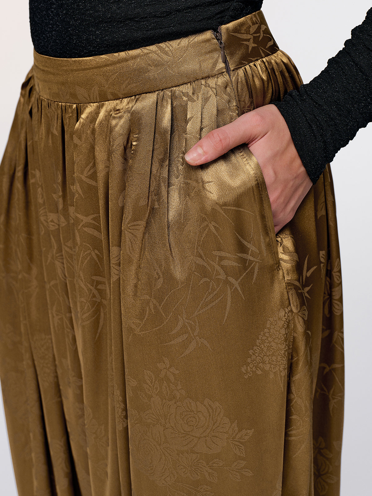 basic - fabric,bottoms,brown,casual,clothing,coll:bottoms,coll:pants,coll:trending,cropped pants,floral print,in_six_month,invisible zipper,mid waist,minegence,no,non-stretch,not_low_sales,oa251129059,pants,photo_model,regular,satin,shift,tied&knot,women