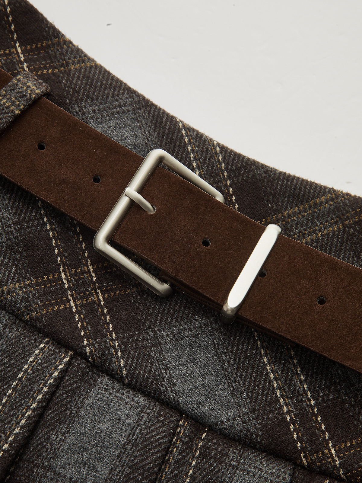 Belted Plaid Pleated Mini Skirt