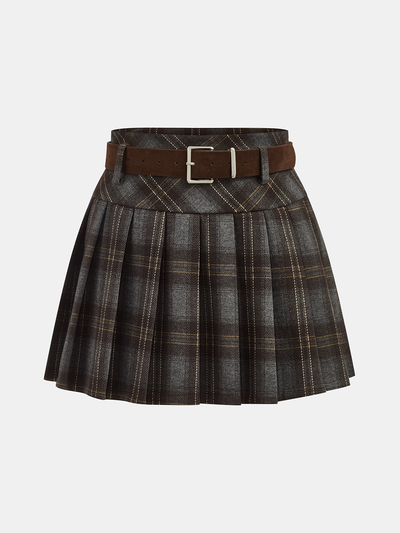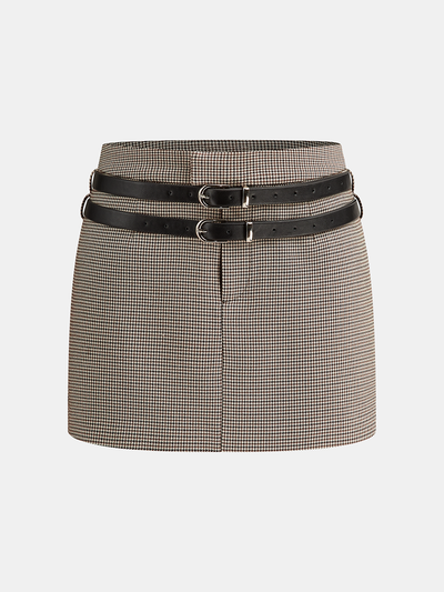 Faux Leather Panel Asymmetric Plaid Midi Skirt