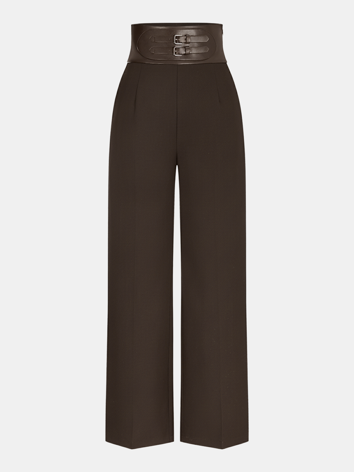 black,bottoms,casual,cathryn-t,clothing,coll:bottoms,coll:old_money,coll:pants,coll:trending,coll:vintage_fabrics,corpcore,dark brown,fall,faux leather,in_six_month,invisible zipper,long pants,minegence,no,non-stretch,not_low_sales,oa251011008,pants,patchwork,regular,regular fit,winter,women,woven fabric