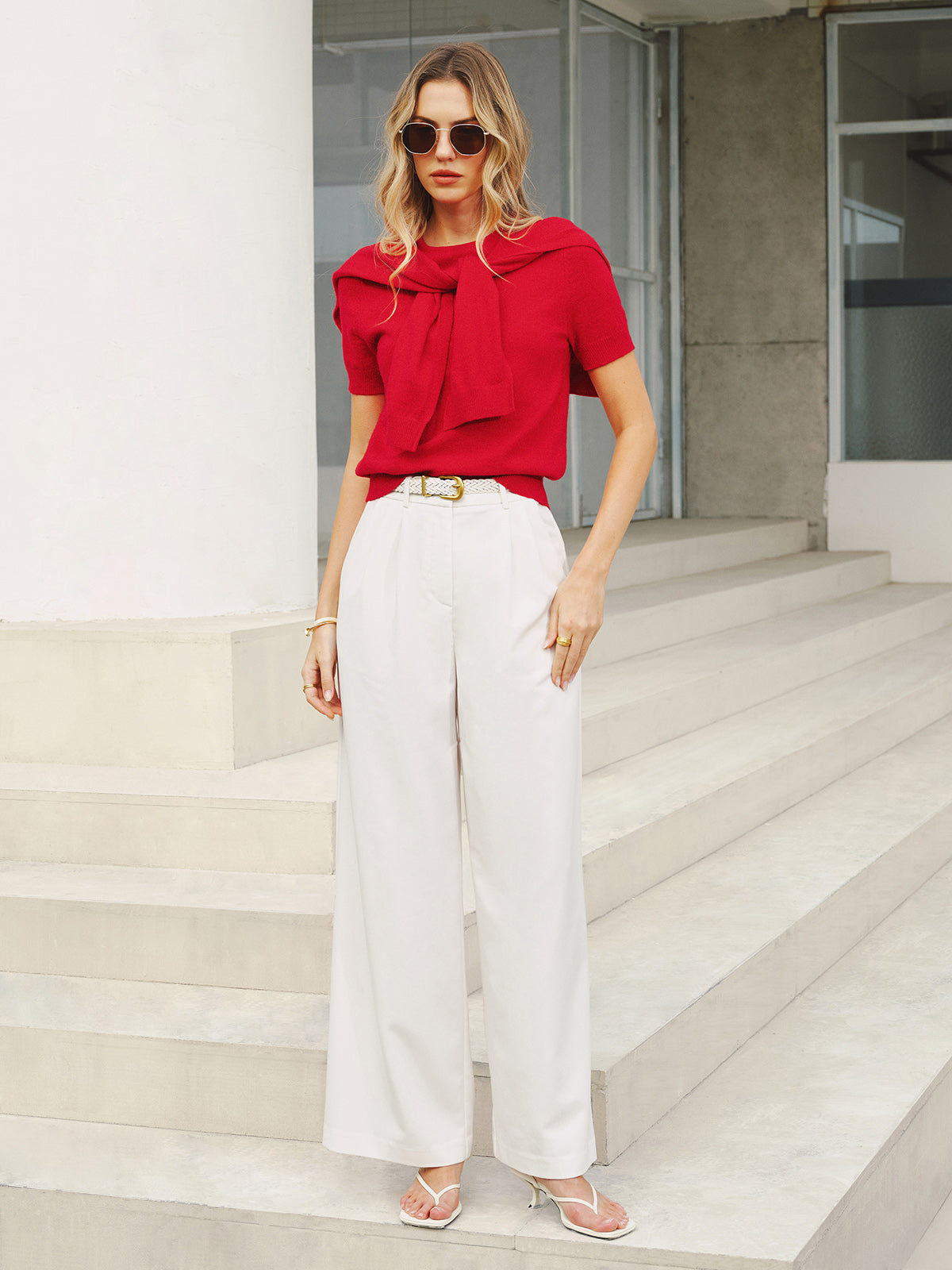 bloused waist,casual,clothing,coll:knitwear,coll:sweater_tops,coll:sweaters_cardigans,coll:tops,coll:trending,corpcore,in_six_month,knitwear,minegence,not_low_sales,oa251211066,off-shore collective,photo_model,red,regular,regular fit,slight stretch,summer hues,sweaters,women,woollen blend
