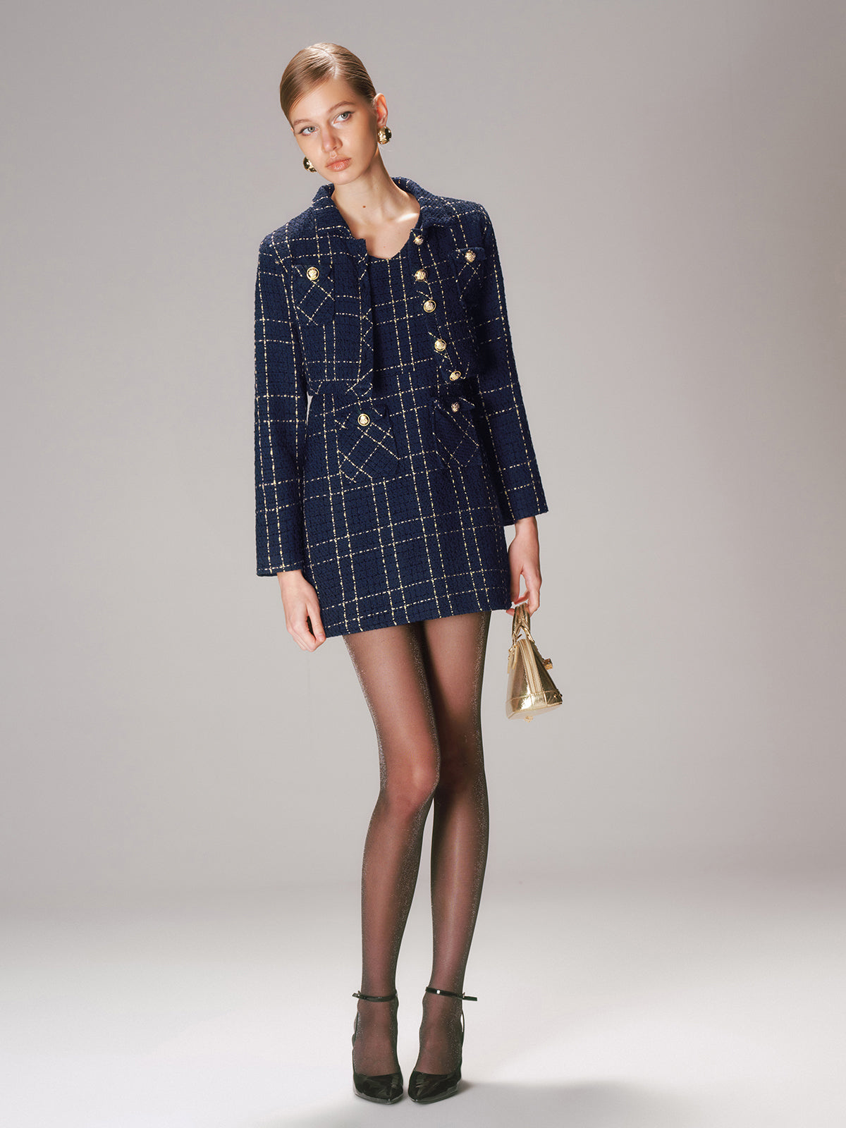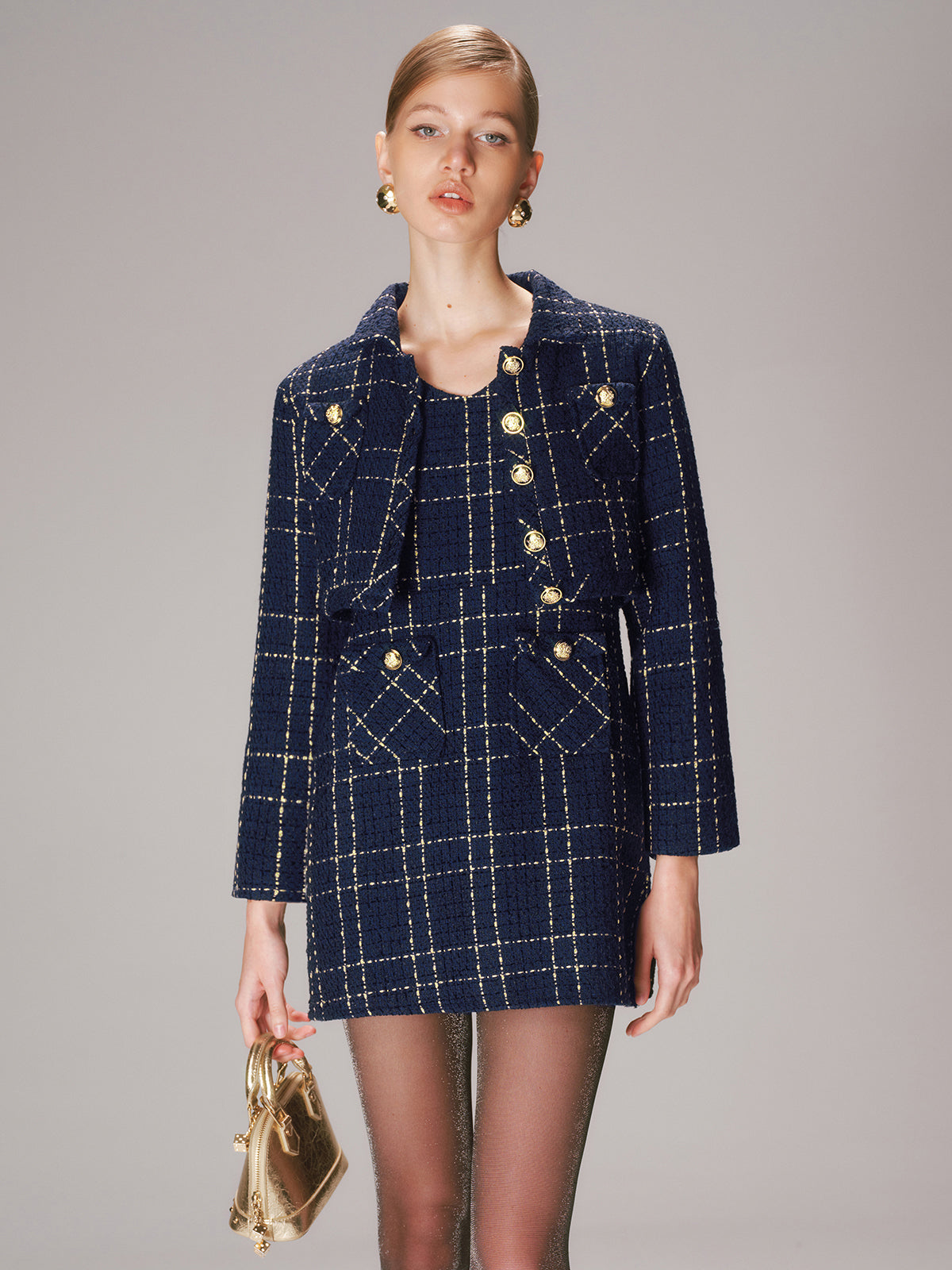 25 christmas,a-none,cici select,clothing,coll-2025-11-14,coll:jackets,coll:matching_sets,coll:plaids_polka,coll:skirts,coll:vintage_fabrics,fall,feminine,festive moods,in_six_month,invisible zipper,metal detail,navy,non-stretch,not_low_sales,oa251008033,photo_model,plaid,regular,regular fit,sets,skirt sets,spring,tweed,winter,winter hues,women