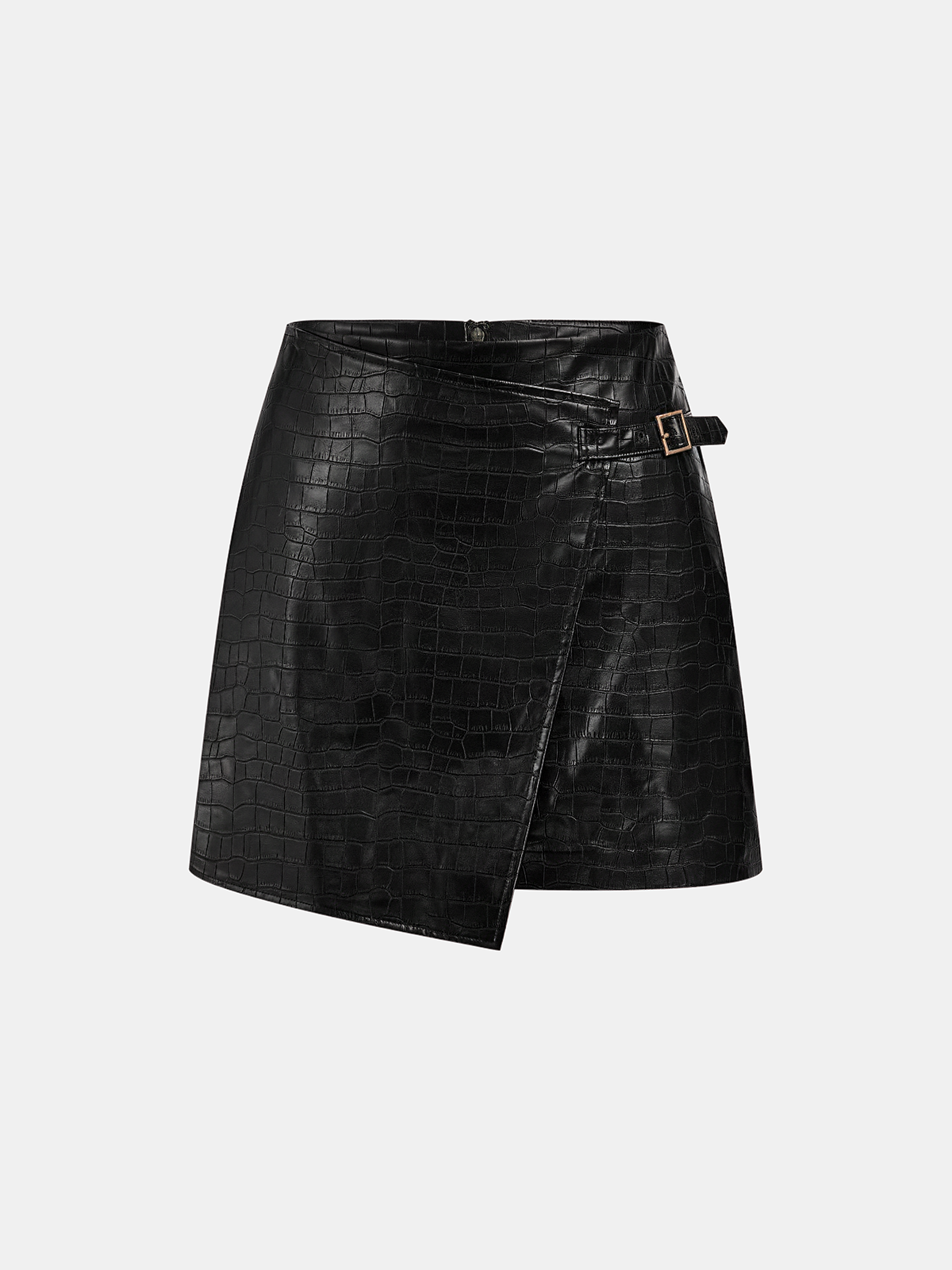 Crocodile Embossed PU Leather Mini Skirt