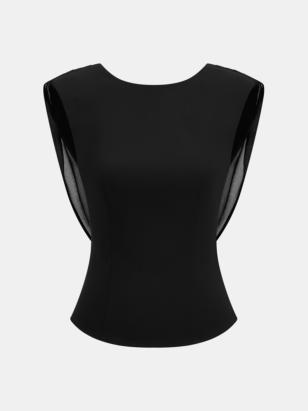 black,blouses,casual,cathryn-d,chiffon,clothing,coll:blouses_shirts,coll:tops,corpcore,crew neck,drape,feminine,in_six_month,no,not_low_sales,oa251121065,regular,regular fit,sleeveless,slight stretch,tops,white,women,woven fabric