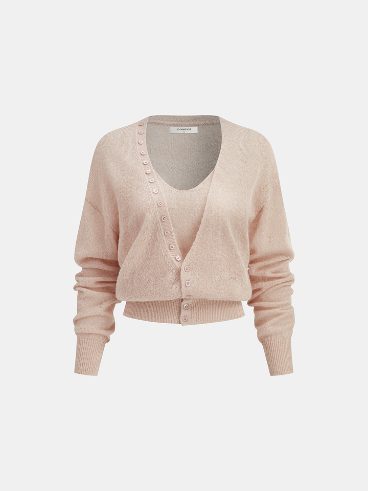 Scalloped Neckline Button-Front Eyelet Crop Top