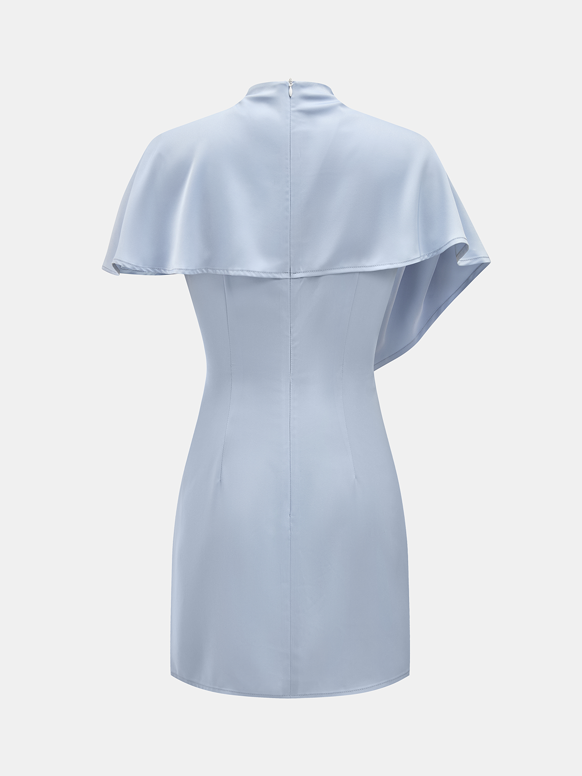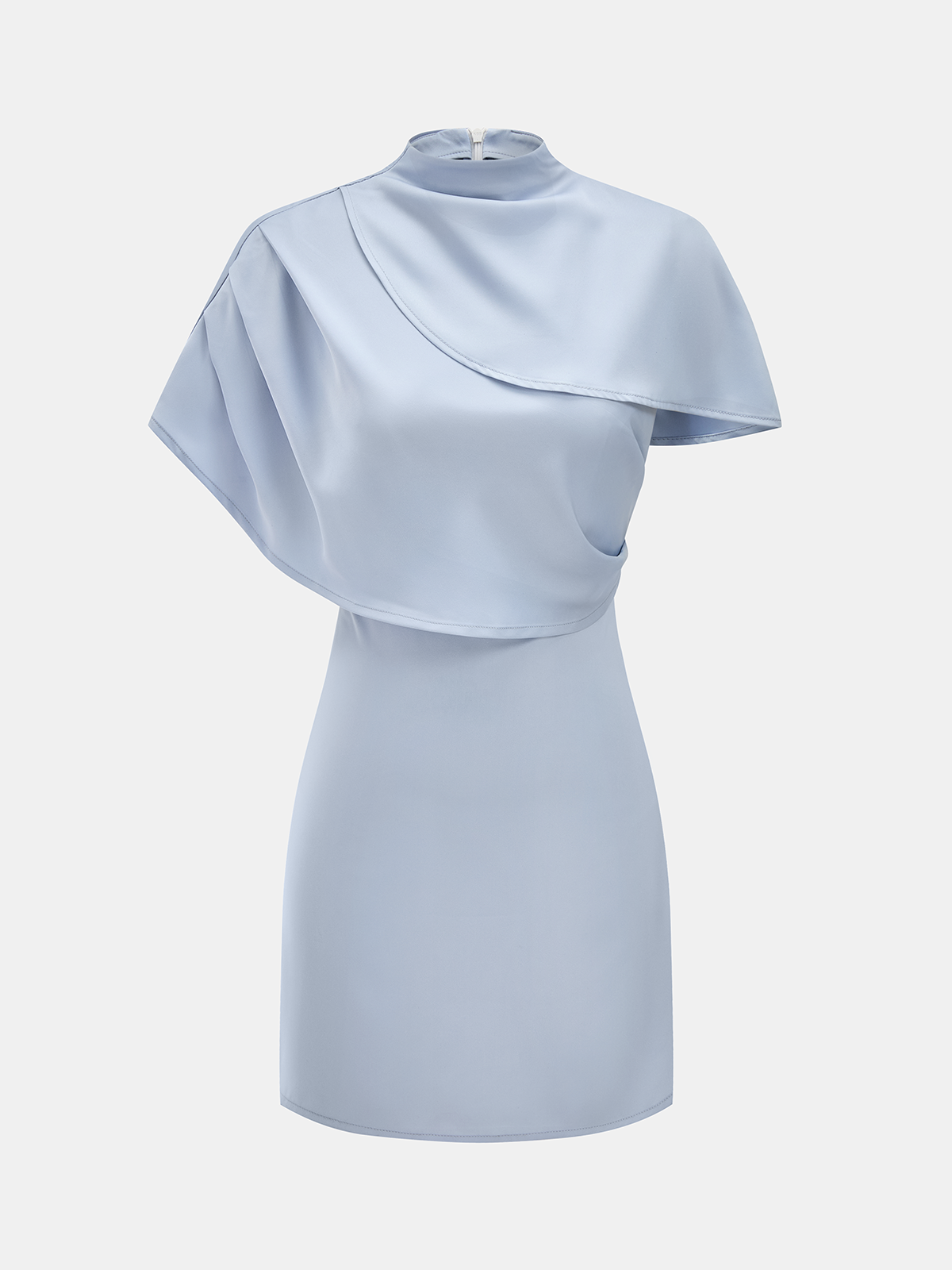 asymmetric,casual,clothing,coll:dresses,coll:short,date,draped overlay,dresses,feminine,in_six_month,invisible zipper,lightblue,mini,no,not_low_sales,oa260116028,regular fit,satin,short sleeve,slight stretch,stand collar,thin,women