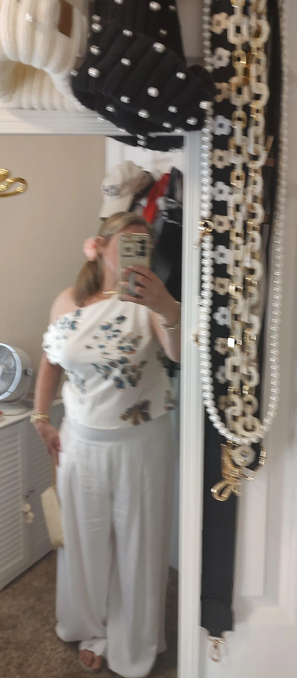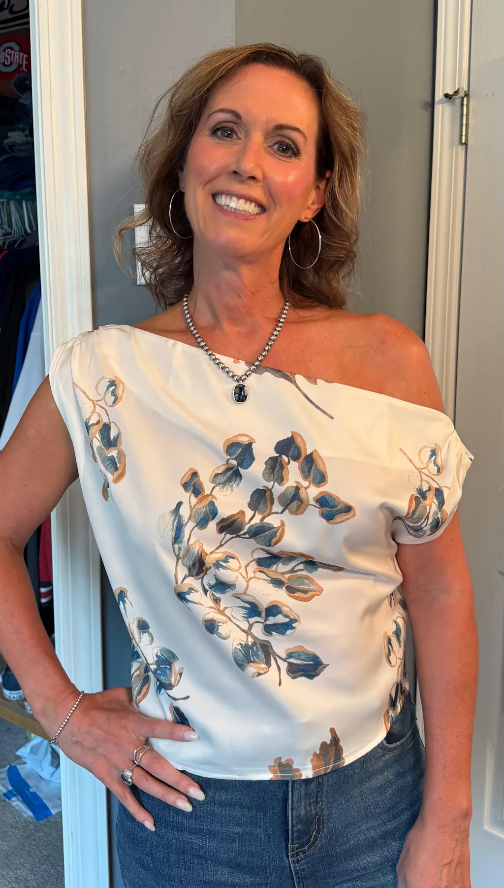 I wore this recently to a concert with the mid rise jeans. It was perfect for the evening! The off-the-shoulder styling really makes this a show-stopper. The material is also thick enough while still being soft to the touch. I also see the floral pattern transitioning seamlessly into fall. It feels a bit large, but I’m also long-wasted so it helped with the length.