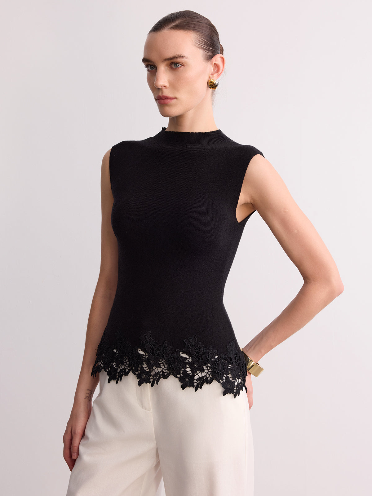 Sleeveless Lace Hem Knit Vest