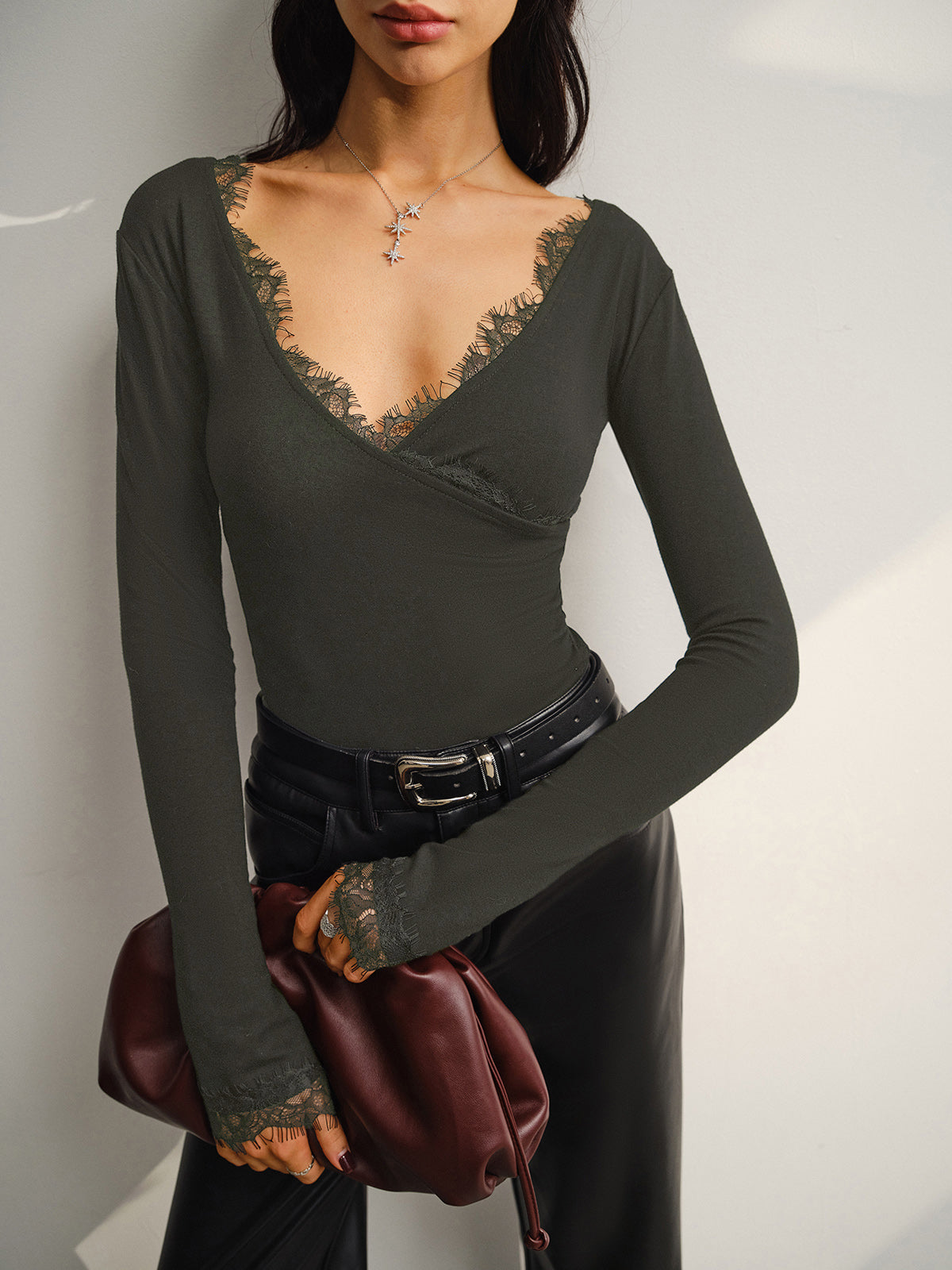 black,burgundy,cici select,clothing,coll:tops,coll:trending,coll:vacation,coll:weekend_getaway,date,date-2025,elegant,ellie,fall,ftt,grey,inner sample,jersey,lace,lace or tulle trimmed,long sleeve,medium stretch,no,not_low_sales,oa241107040,photo_model,regular,serena-选品,slim fit,spring,t-shirts,tops,v-neck,vacation,valentine's day,white,winter,women