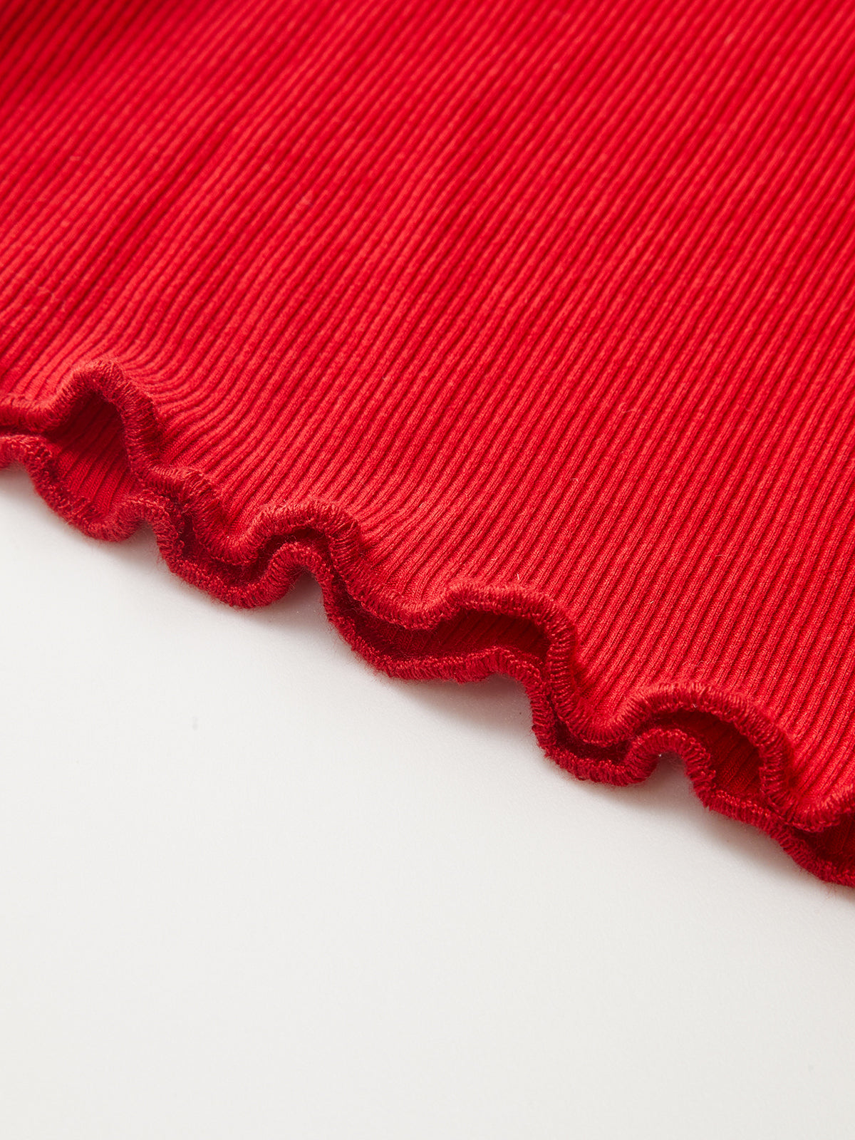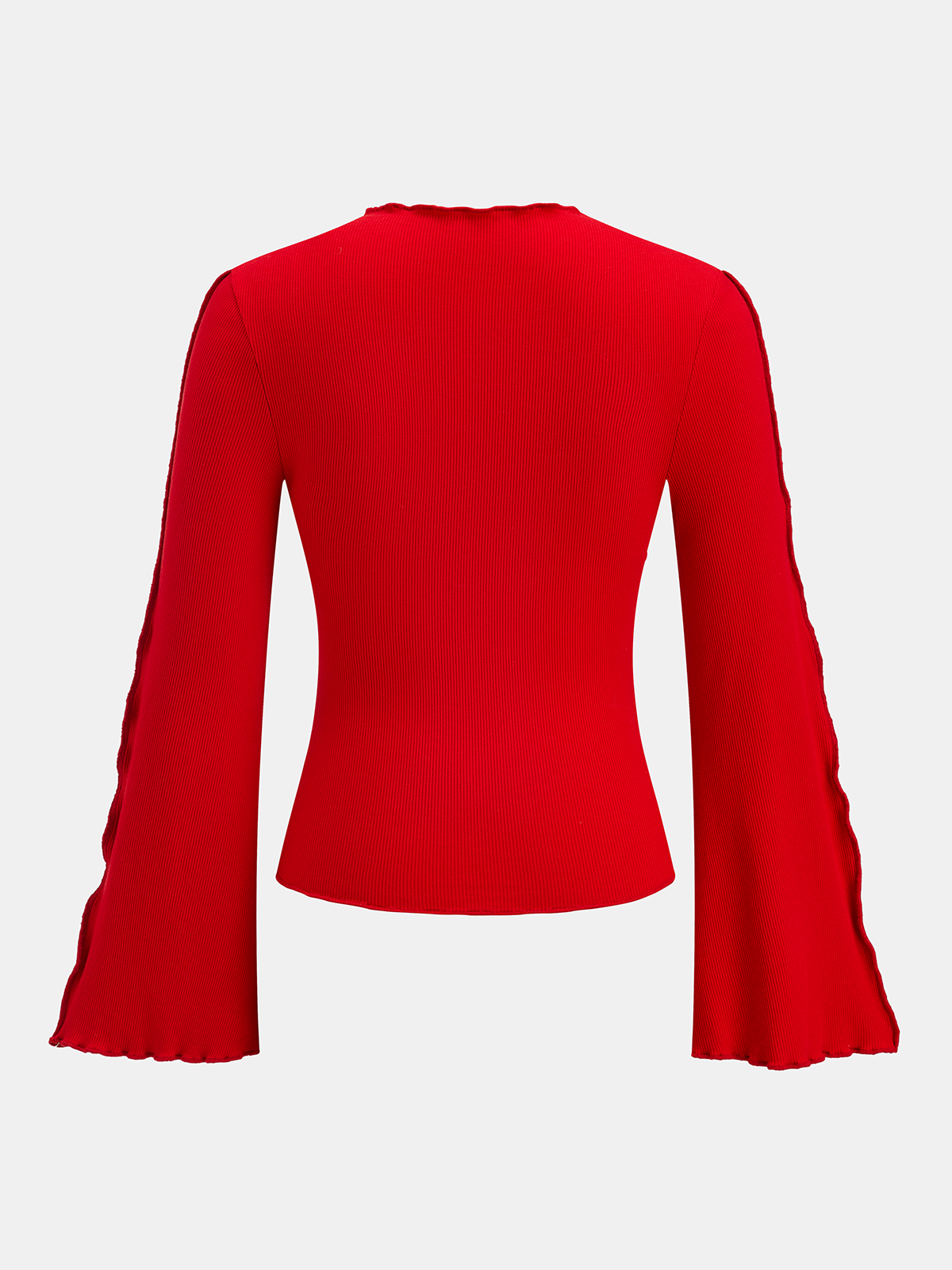Asymmetric Seam Flared Sleeve Ribbed Knit Top