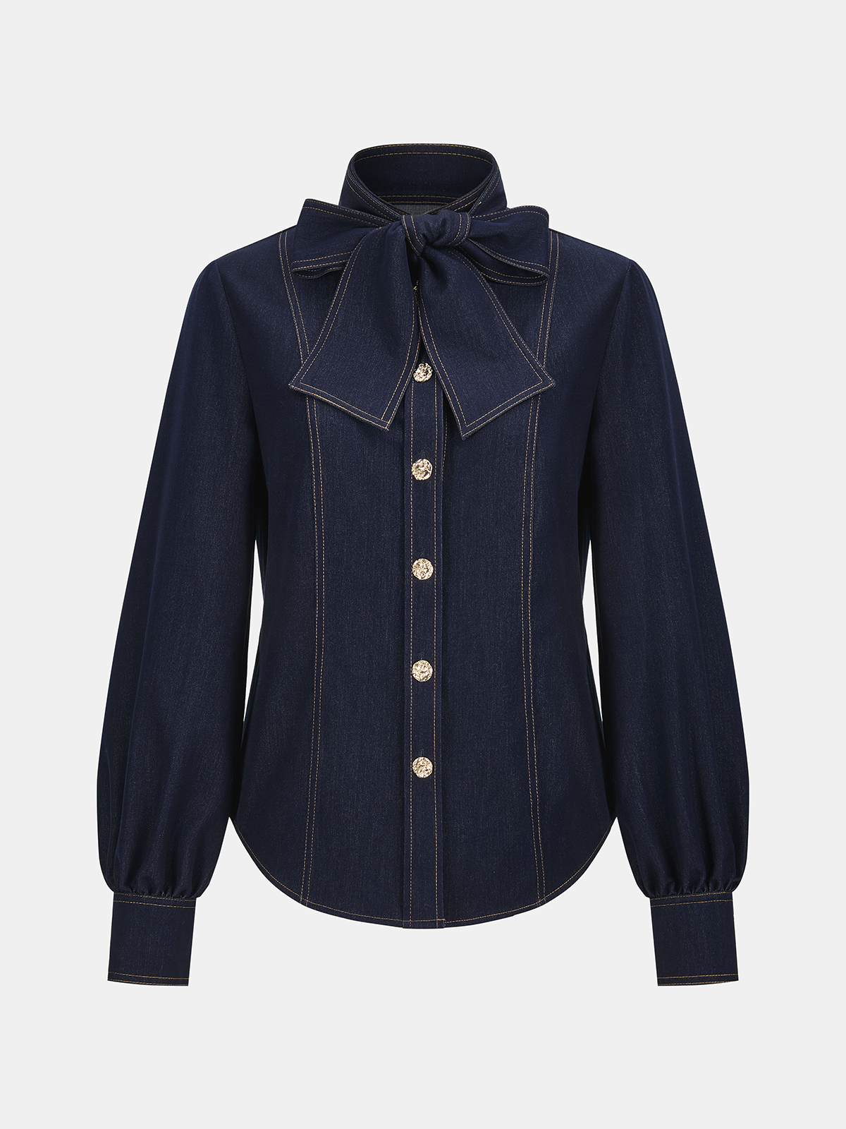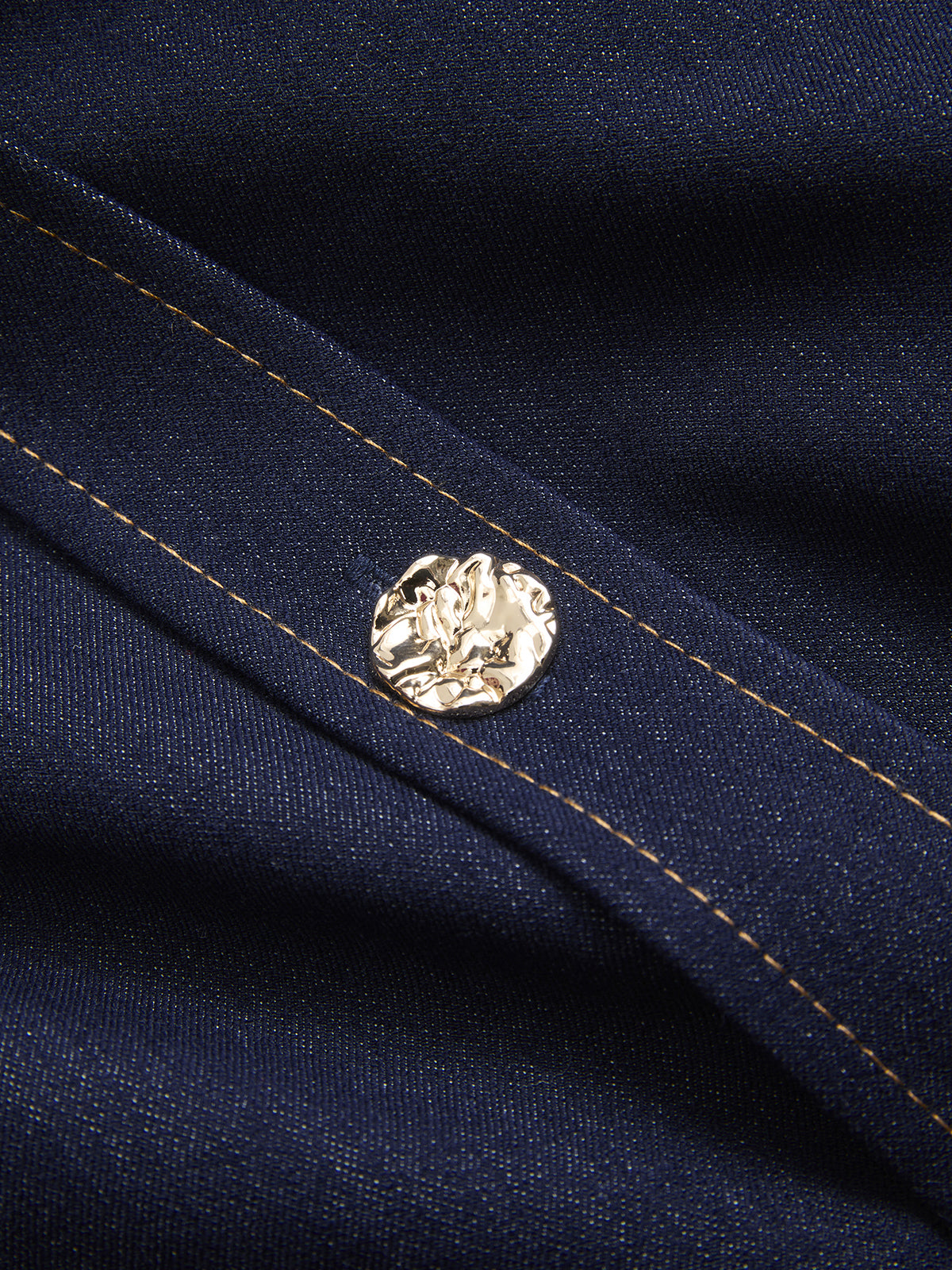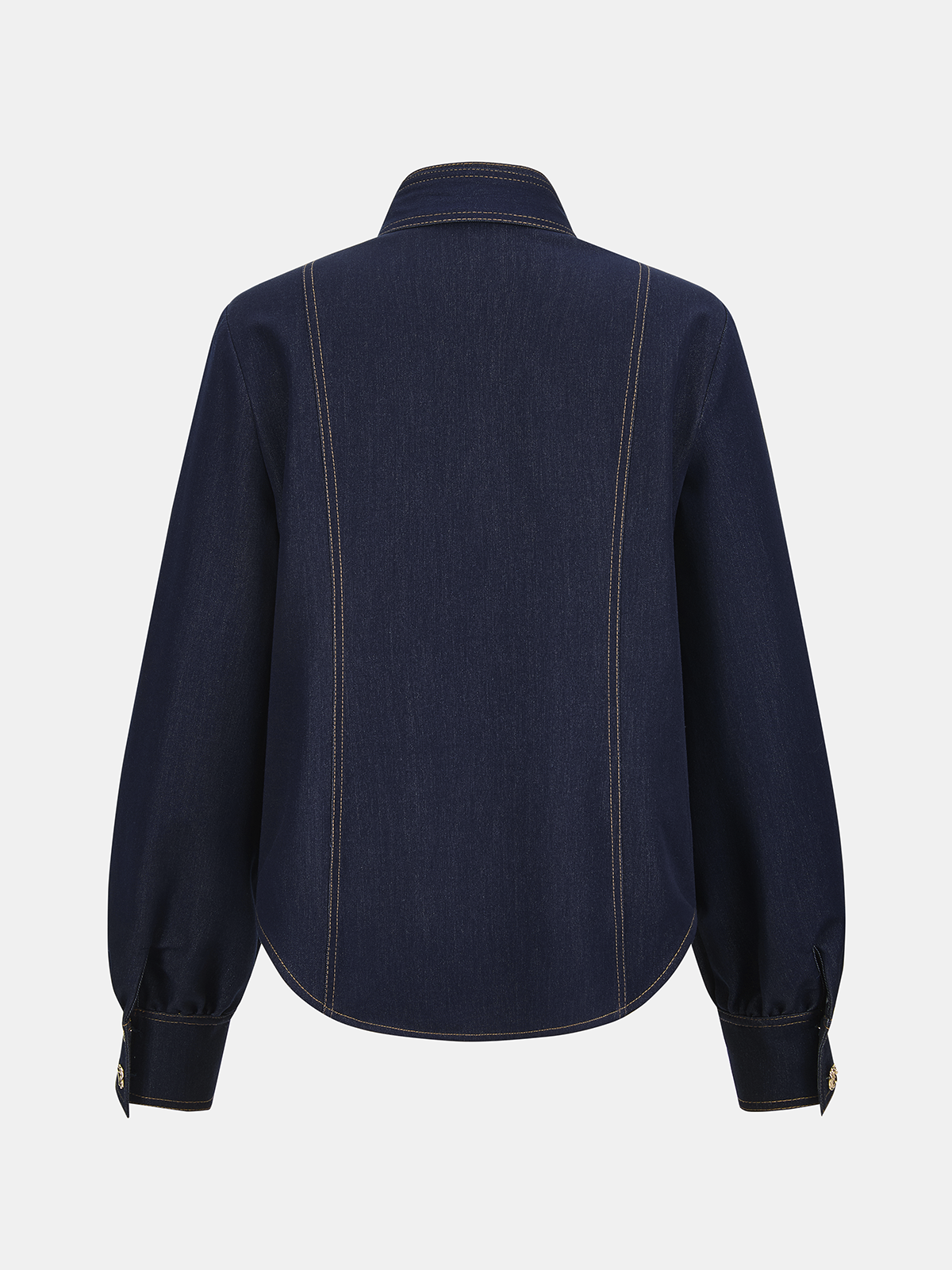 a-none,clothing,coll:blouses_shirts,coll:denim,coll:tops,denim,fall,in_six_month,long sleeve,metal detail,minegence,navy,no,not_low_sales,oa251031085,regular,shift,shirts,slight stretch,spring,stand collar,tops,winter,women