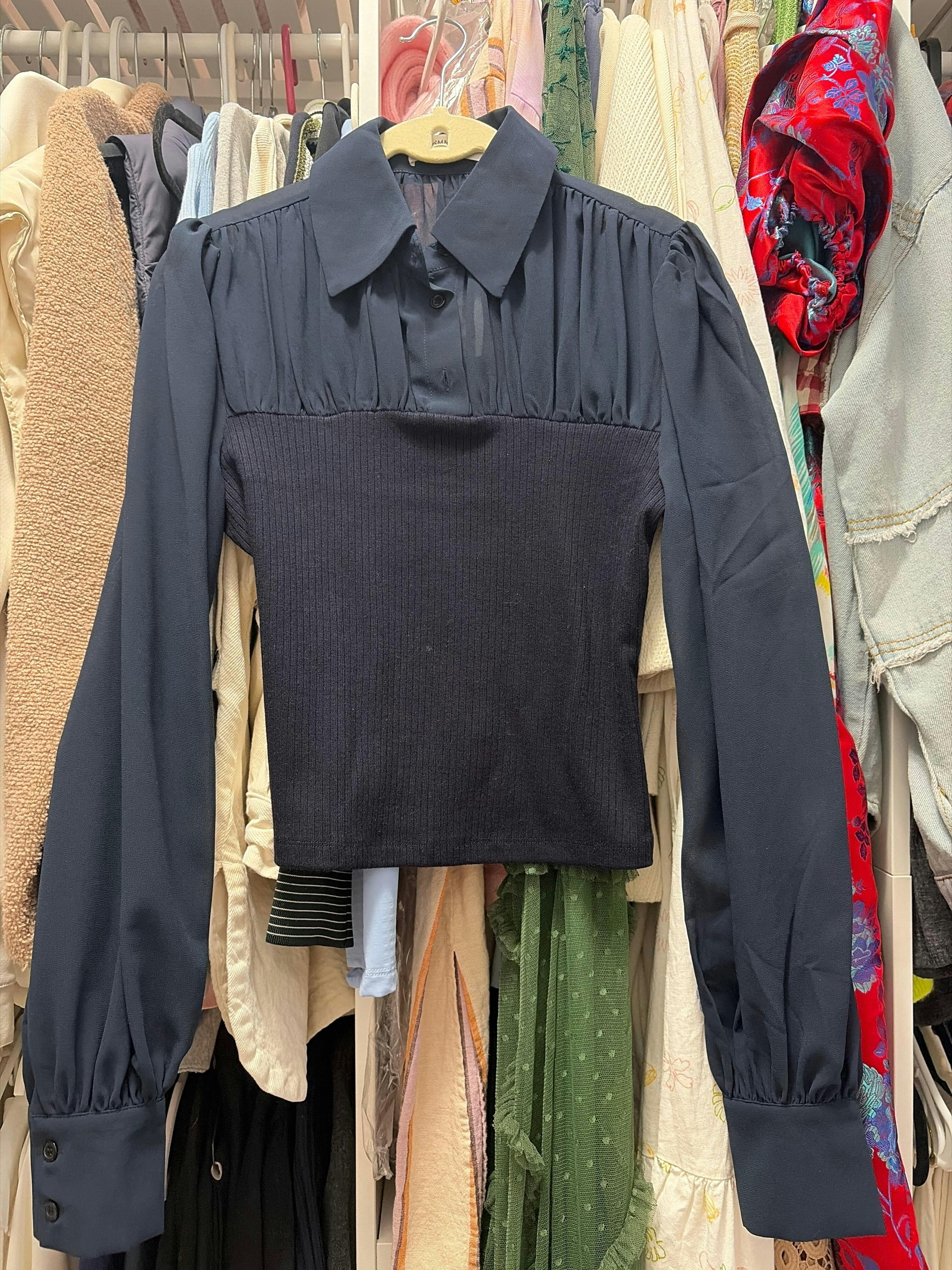 basic - designer,black,casual,clothing,coll:blouses_shirts,coll:tops,collar,date,fall,feminine,in_six_month,long sleeve,medium stretch,navy,not_low_sales,oa250904014,photo_ai,regular,ribbed,semi-sheer,shift,shirts,tops,women