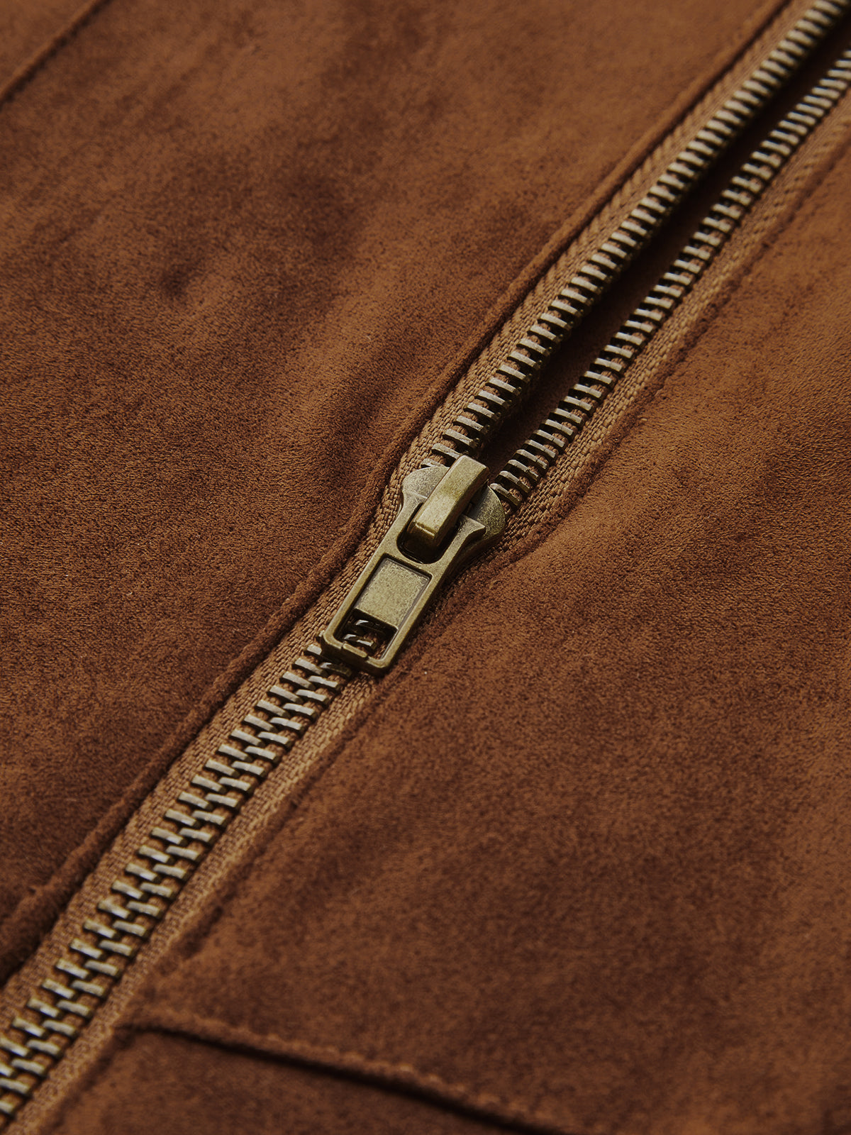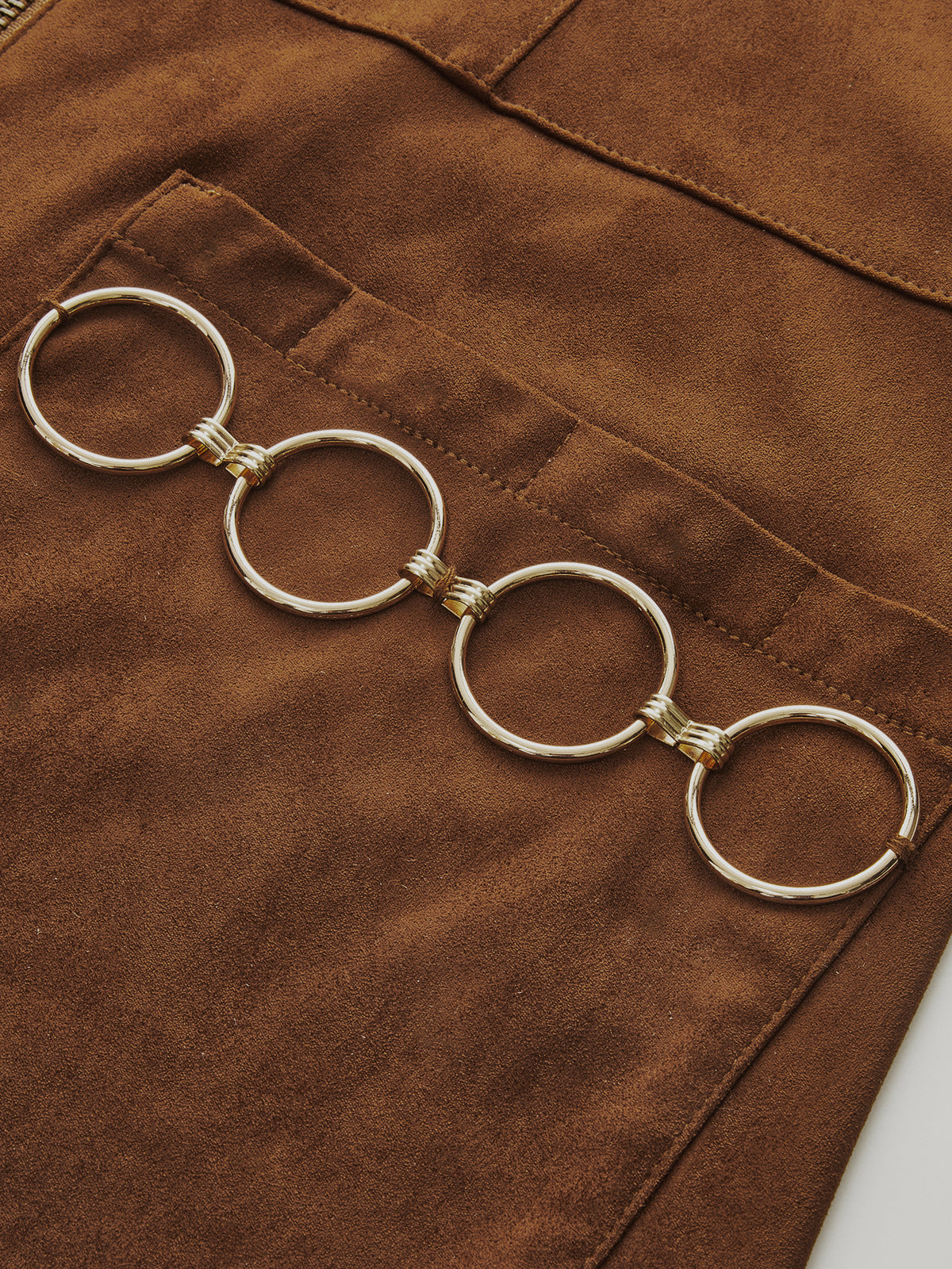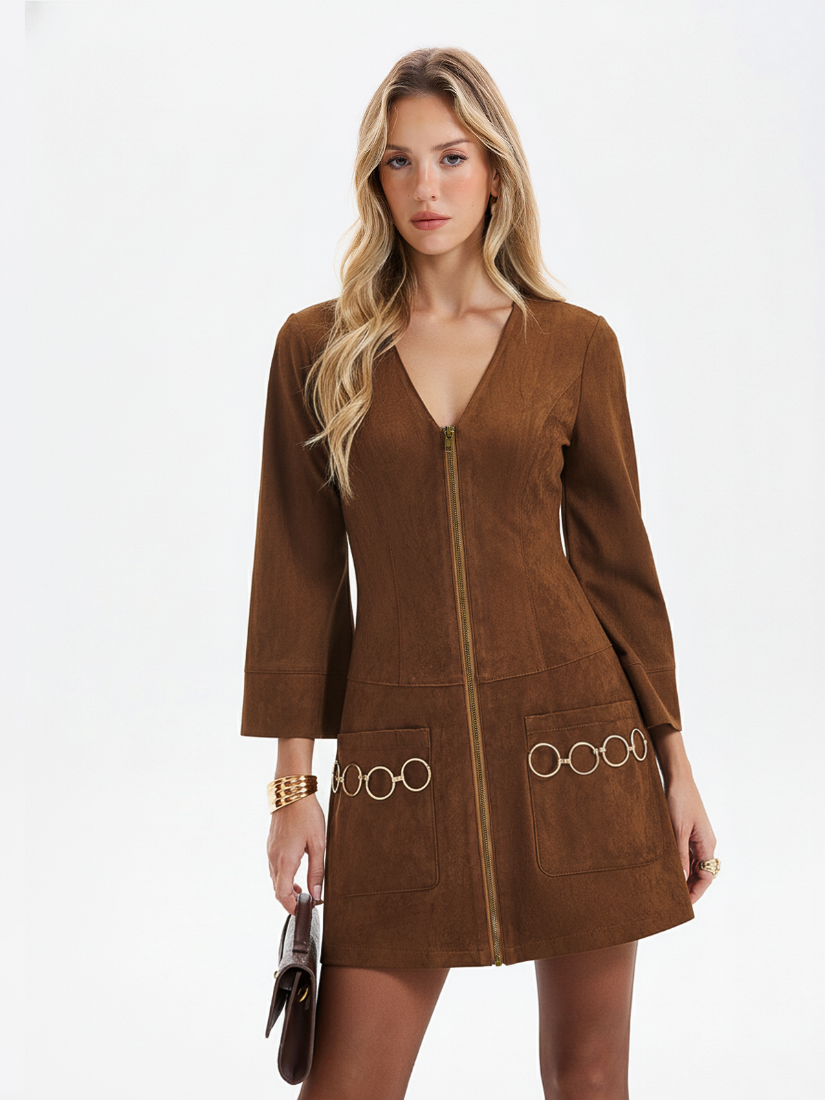 Ring Detail Suede Effect Zip-Front Mini Dress