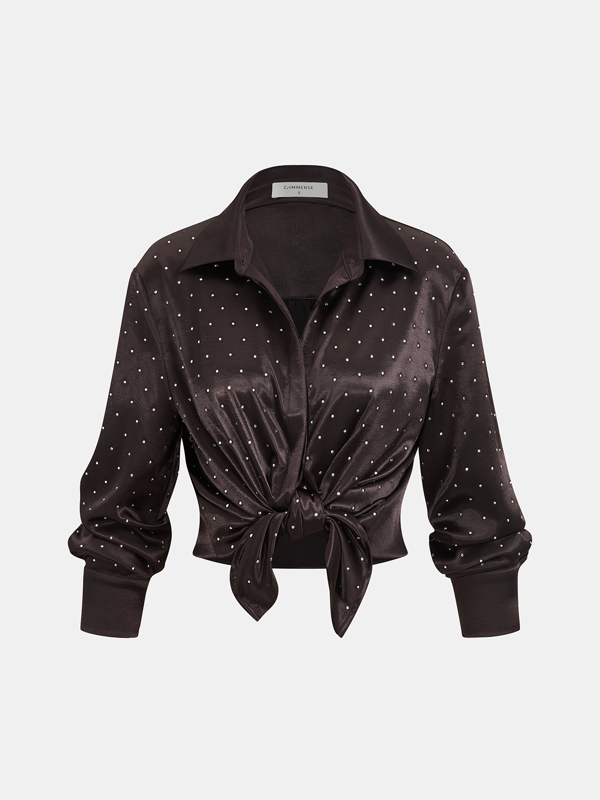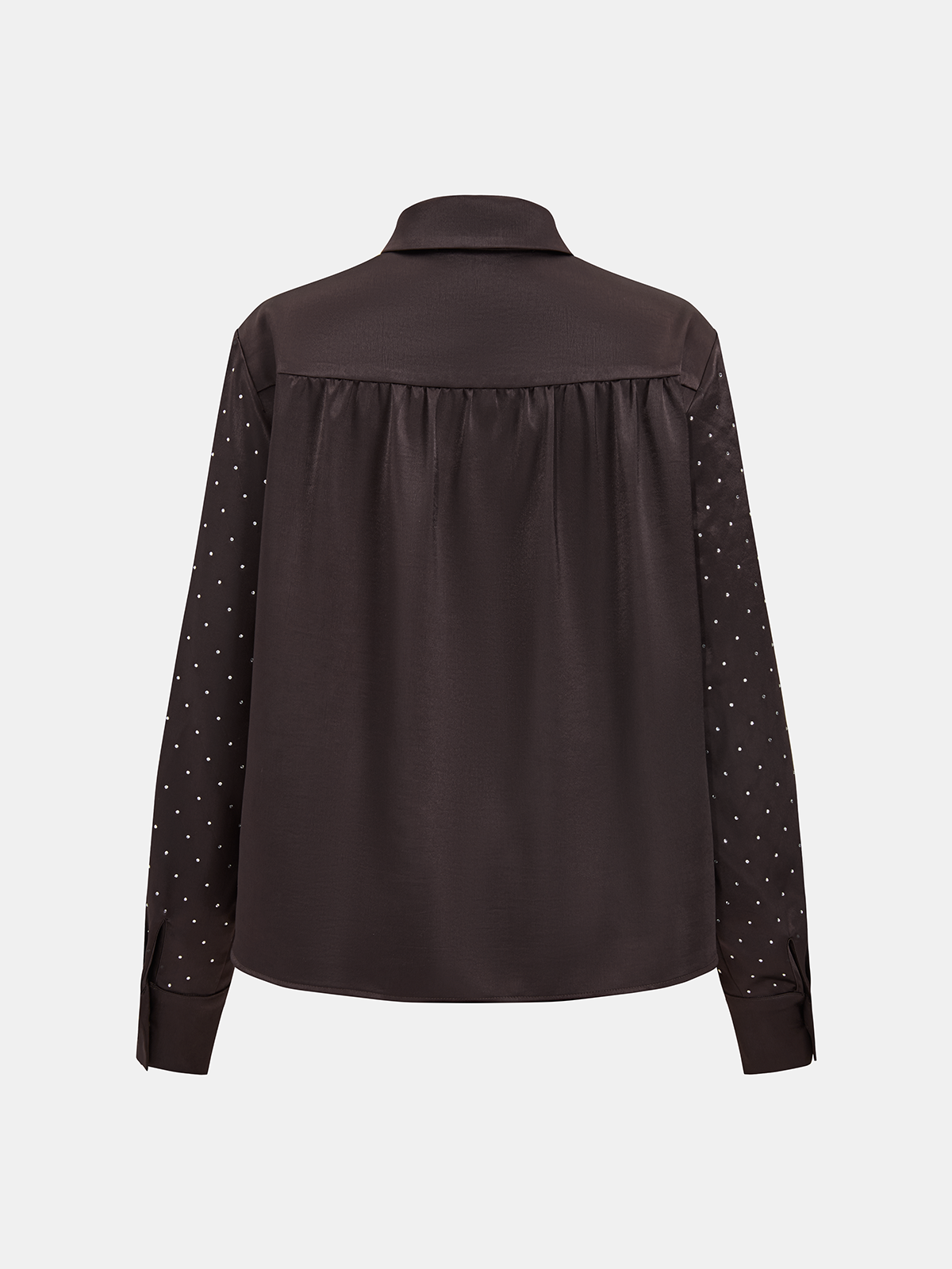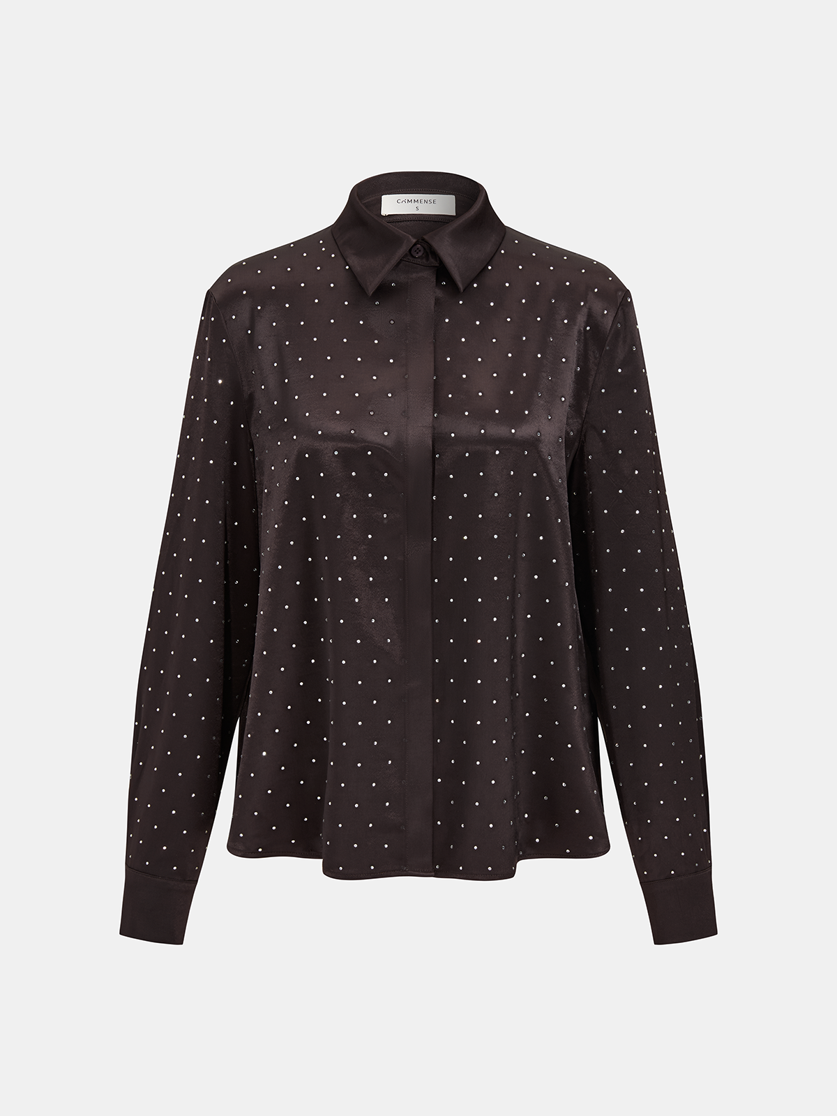 casual,clothing,coll:blouses_shirts,coll:night_glam,coll:tops,collar,dark brown,in_six_month,long sleeve,minegence,no,not_low_sales,oa251121061,party,polka dot,regular,regular fit,satin,shirts,slight stretch,tops,winter hues,women