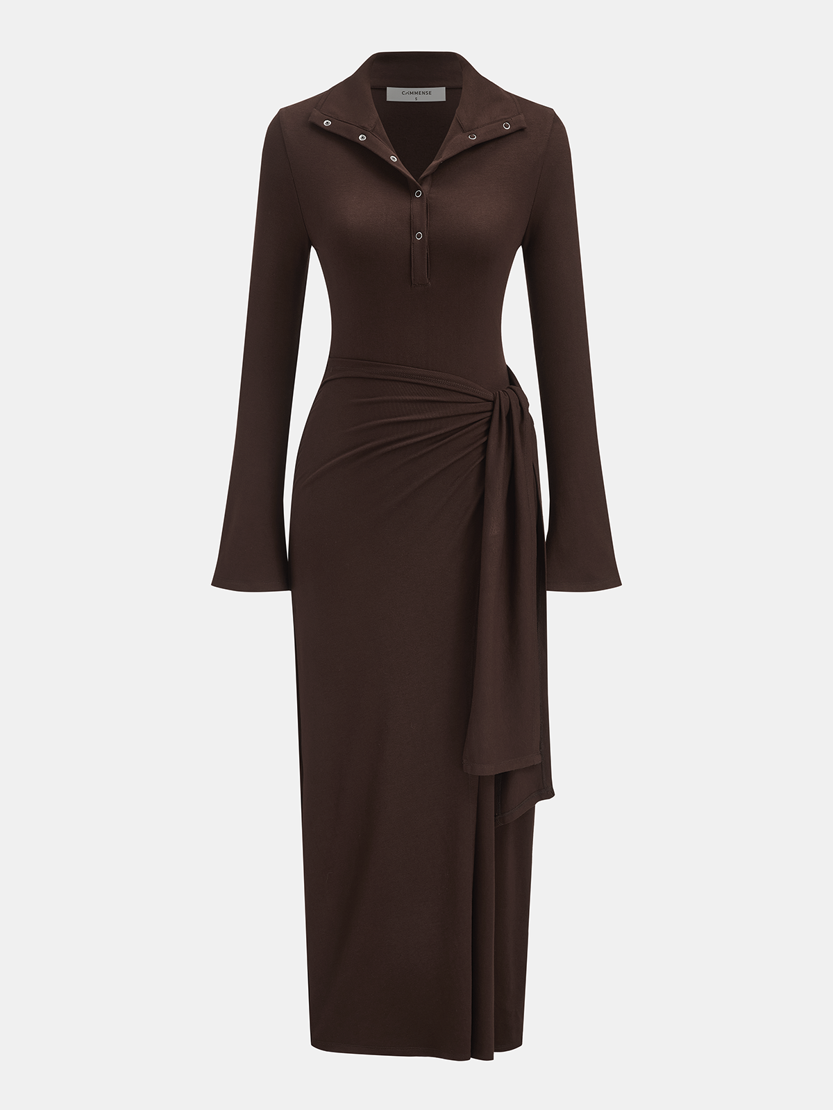 casual,cici select,clothing,coll:dresses,collar,corpcore,dark brown,dresses,fall,feminine,in_six_month,jersey,long sleeve,maxi,medium stretch,no,not_low_sales,oa251031055,regular,regular fit,spring,winter,winter hues,women