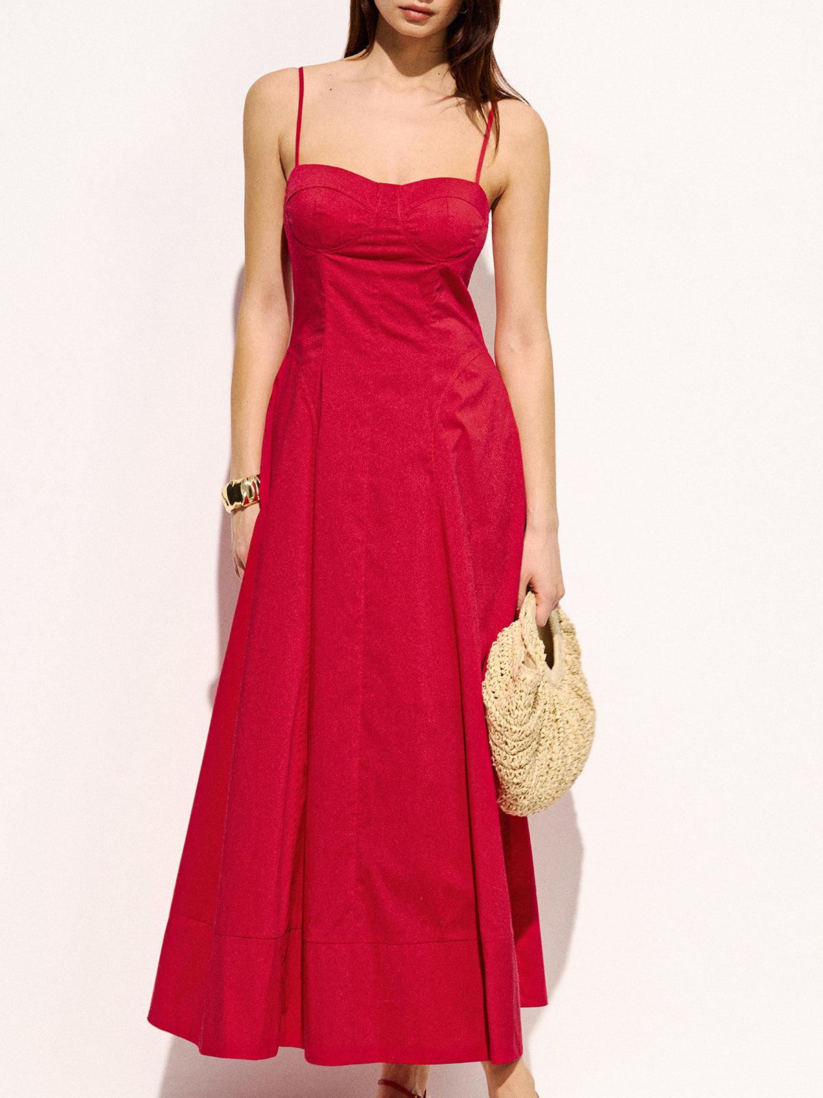 Cotton Blend Pocketed Cami Flared Maxi Dress