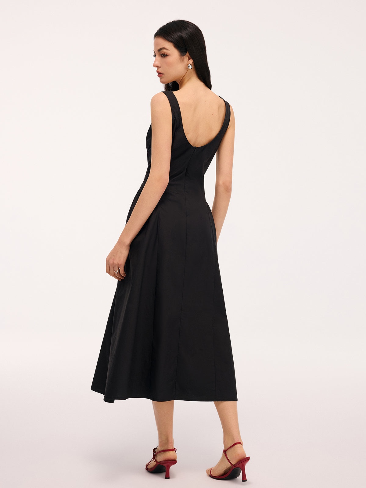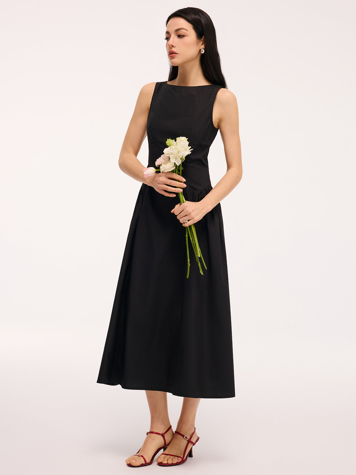 black,casual,clothing,coll:dresses,coll:linen_cotton,cotton,crew neck,date,dresses,feminine,in_six_month,maxi,mwt,no,non-stretch,not_low_sales,oa251204116,photo_model,regular,regular fit,ruched,season of love,serena-选品,sleeveless,umbrella hem,women,zyq