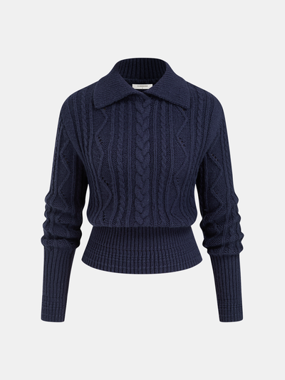 Wool-Blend Cable-Knit Waist-Defined Sweater