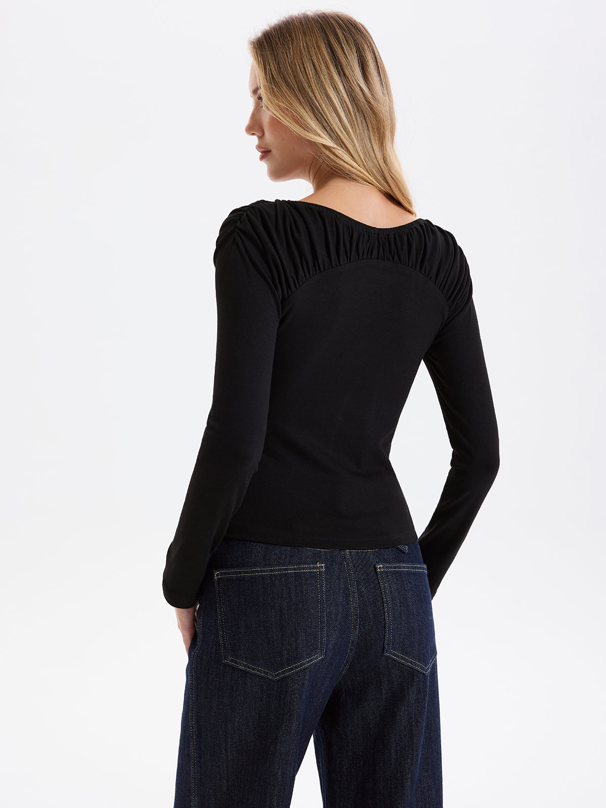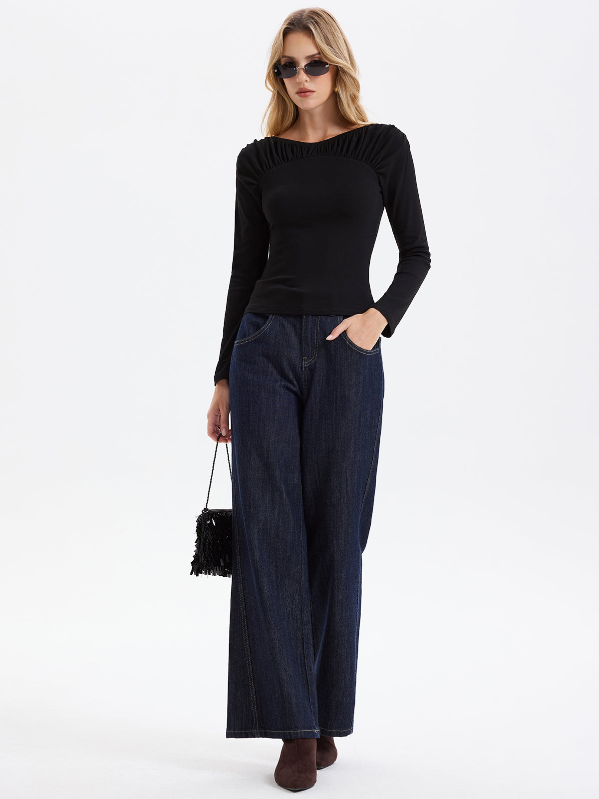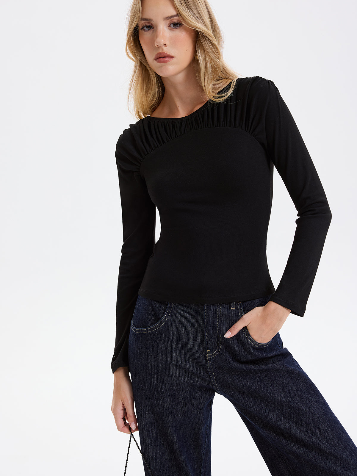 a-none,black,blouses,casual,clothing,coll:blouses_shirts,coll:tops,corpcore,crew neck,fall,in_six_month,jersey,long sleeve,medium stretch,minegence,no,not_low_sales,oa250919005,photo_model,regular,slim fit,tops,winter,women
