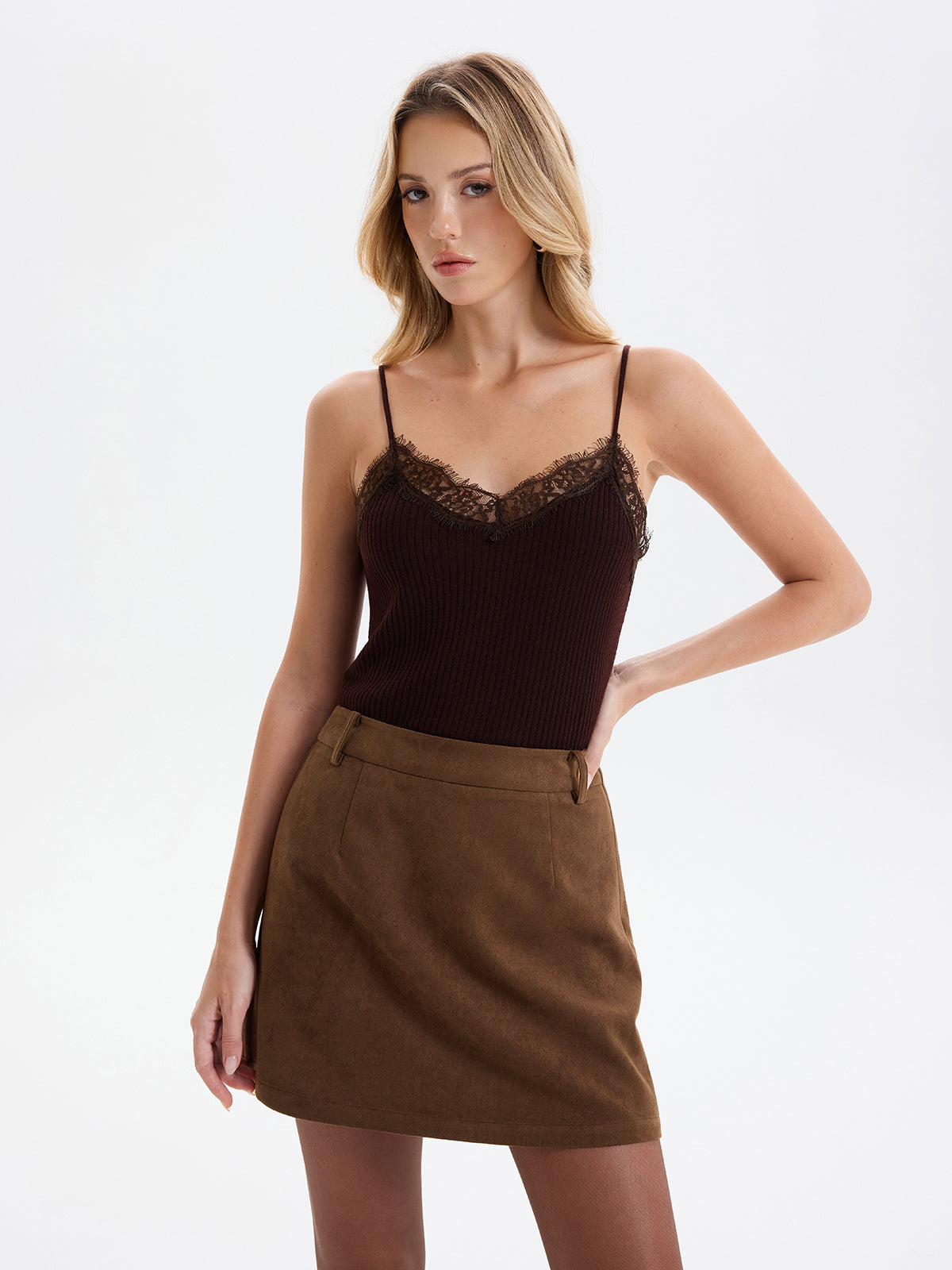 a-none,bohemian,bottoms,brown,clothing,coll-2025-11-14,coll:bottoms,coll:skirts,coll:trending,coll:vintage_fabrics,fall,feminine,in_six_month,invisible zipper,no,not_low_sales,oa250929078,photo_model,regular,regular fit,short,skirts,slight stretch,suede effect,winter,women