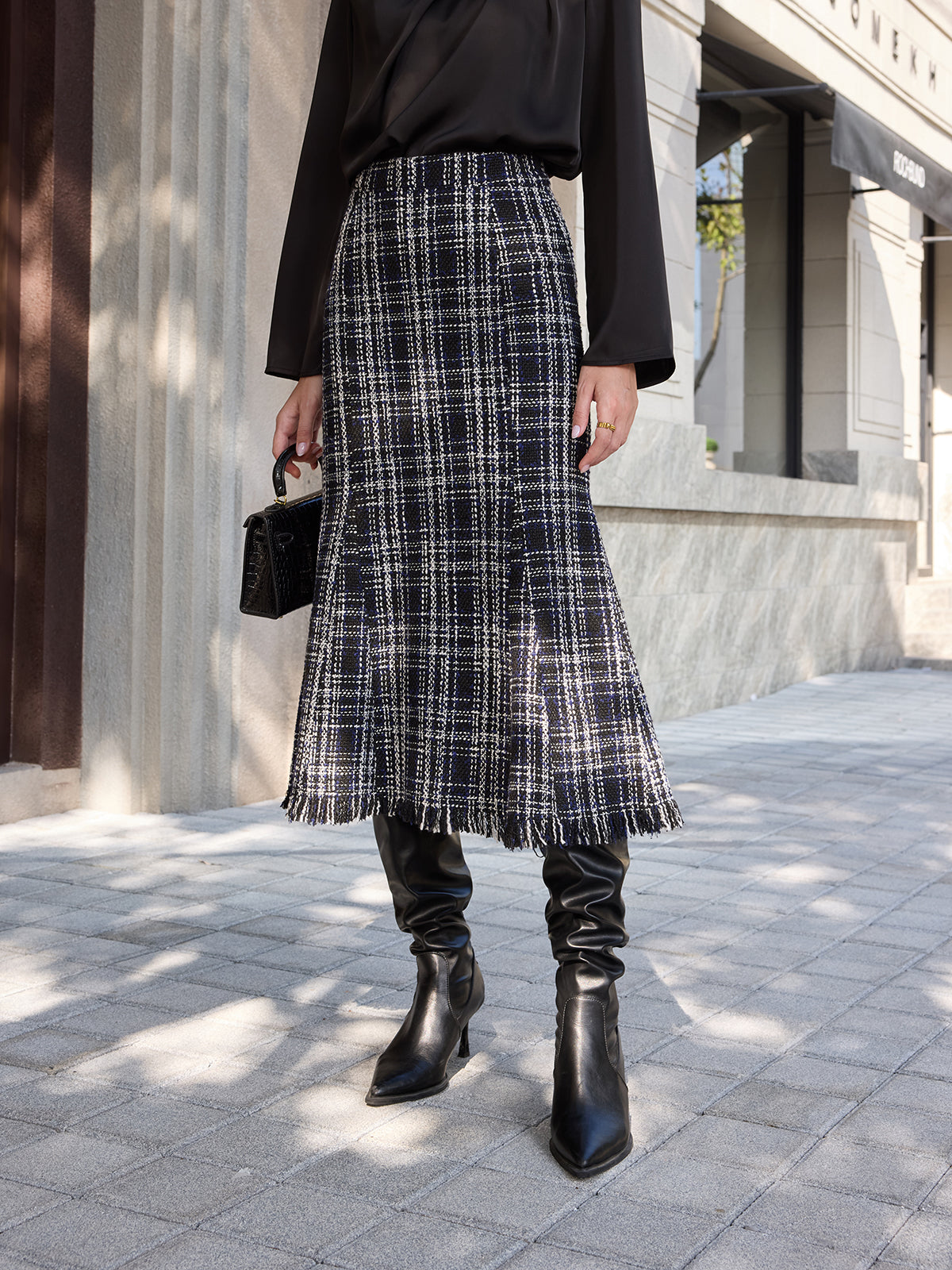 a-none,blue,bottoms,clothing,coll:bottoms,coll:plaids_polka,coll:skirts,coll:vintage_fabrics,fall,feminine,in_six_month,invisible zipper,midi,no,non-stretch,not_low_sales,oa251008052,photo_model,plaid,regular,regular fit,skirts,spring,tweed,winter,women