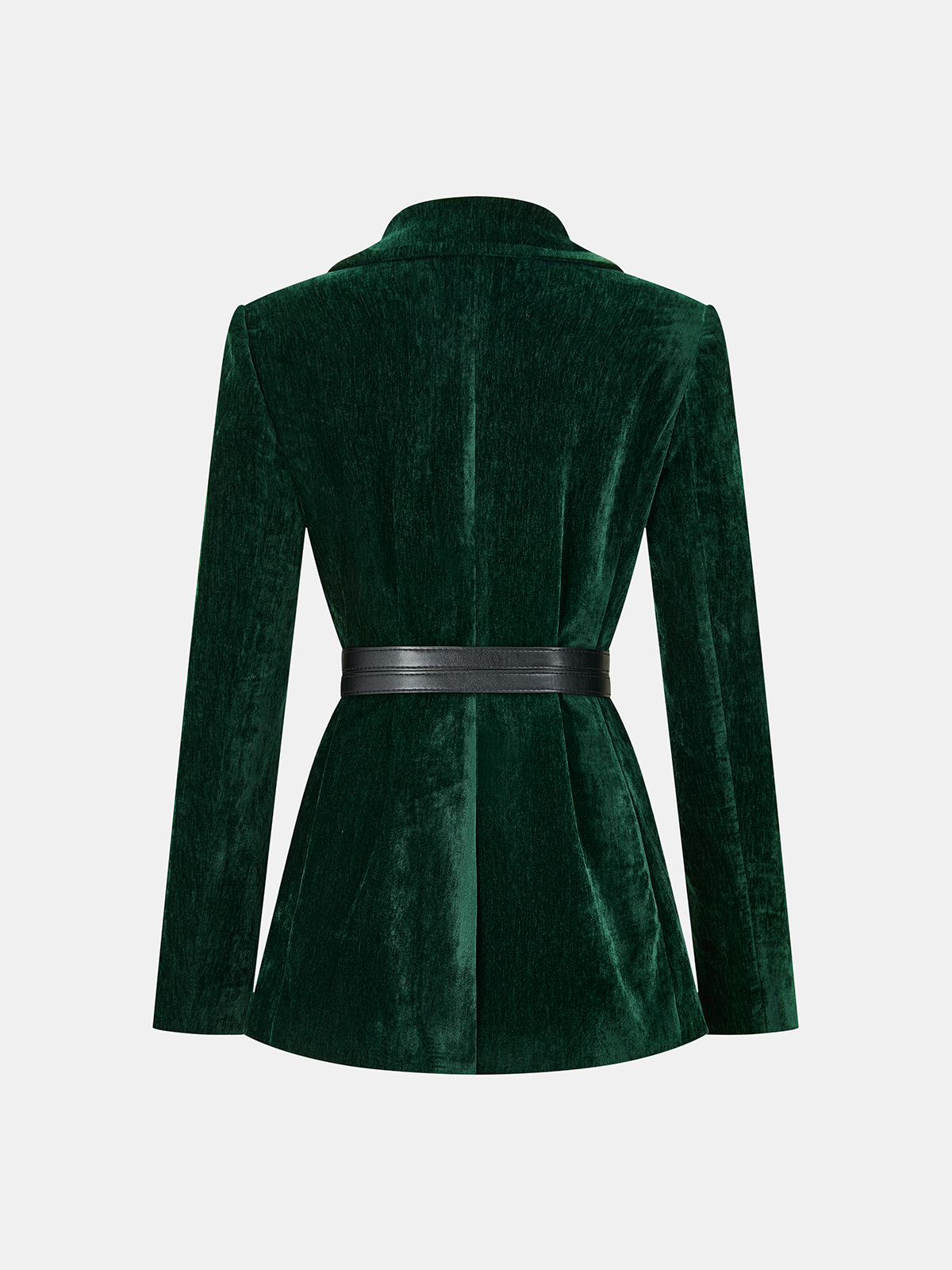 belted,blazers,clothing,coll:blazers,coll:outerwear,coll:tops,coll:trending,coll:vintage_fabrics,corpcore,fall,feminine,green,in_six_month,long sleeve,long top,metal detail,non-stretch,not_low_sales,oa251030096,outerwear,regular,regular fit,velvet,warm,winter,winter hues,women