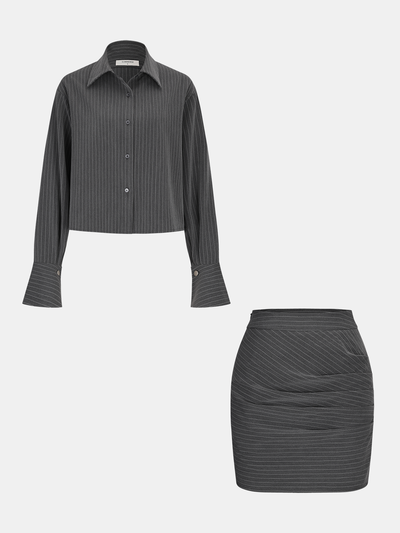 Pinstripe Shirt and Ruched Mini Skirt Set