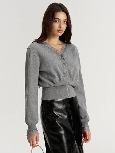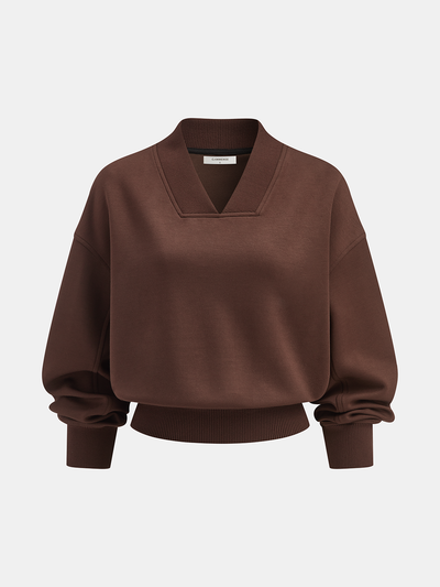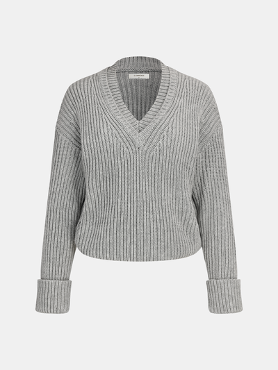 Cuffed Sleeve Ribbed Knit V-Neck Sweater