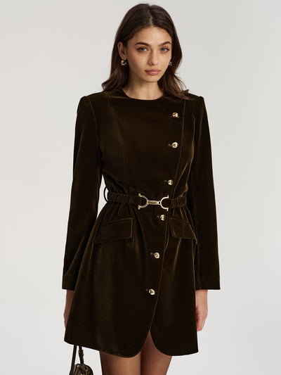 Tweed Double Breasted Pleated Hem Blazer Dress