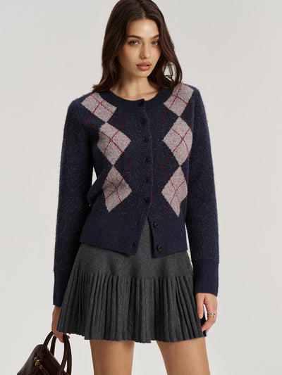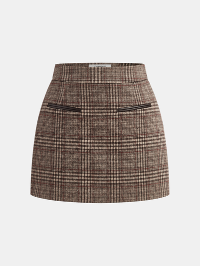Houndstooth Tweed Double-Breasted Mini Skirt
