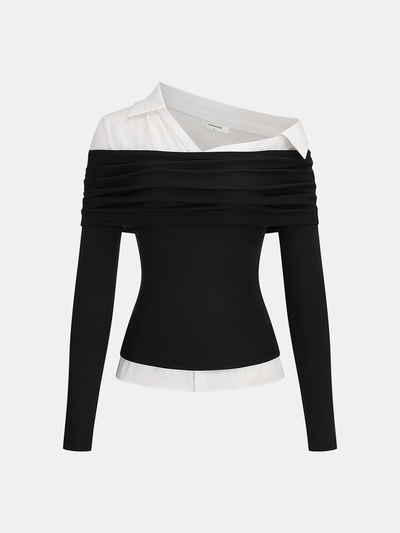 Mesh Tie-Dye Off-Shoulder Long Sleeve T-Shirt