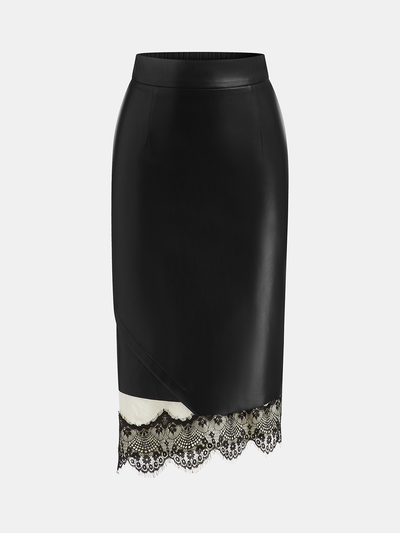 Buckle Detail Faux Leather Panel Pleated Midi Skirt