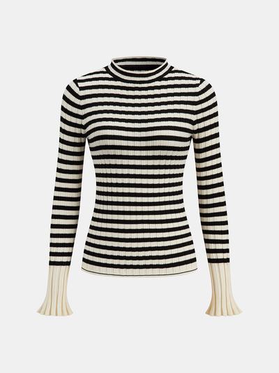 Striped Rib-Knit Flare-Cuff Sweater