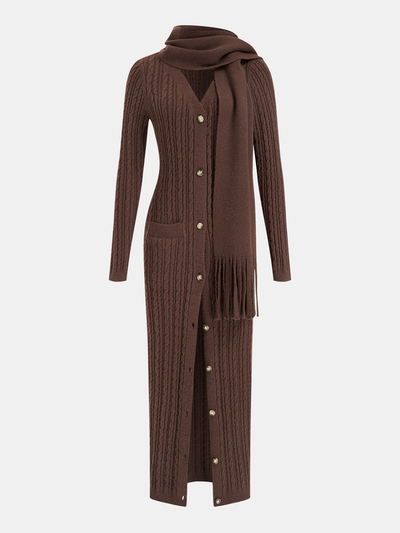 Cable-Knit Dress with Matching Fringe Scarf