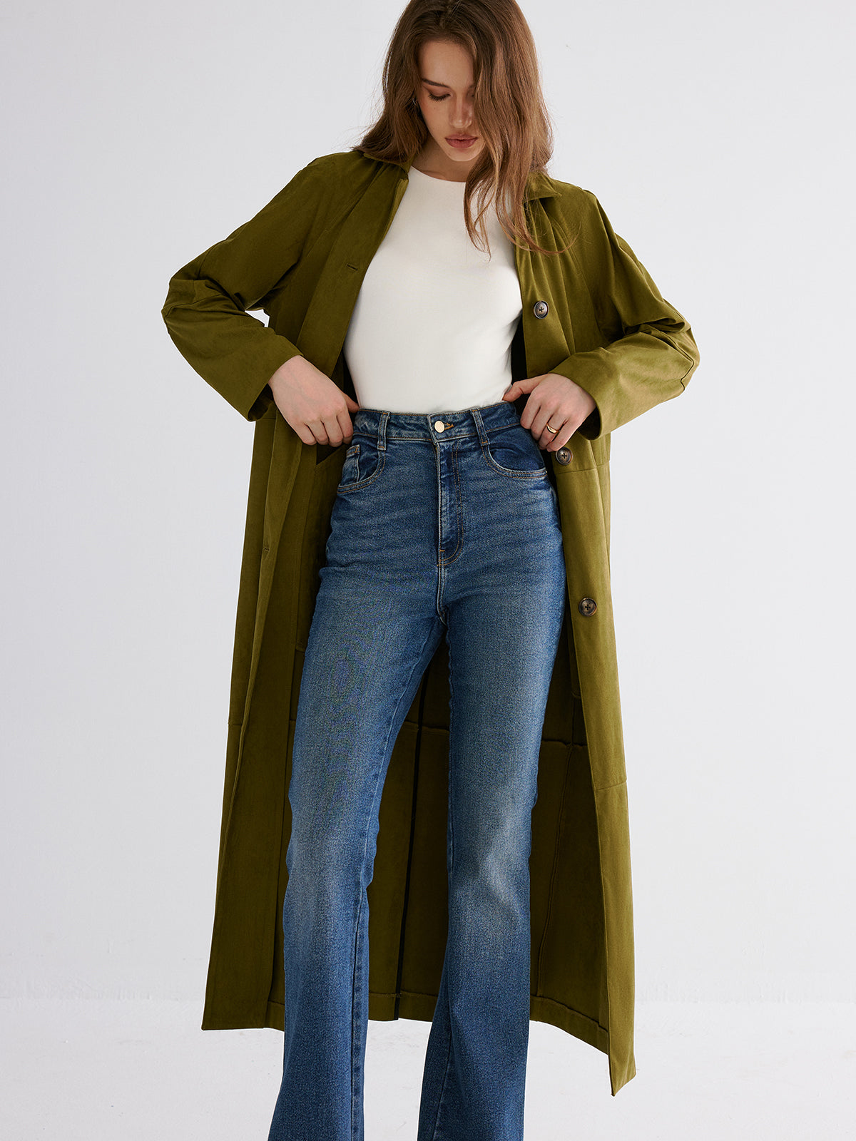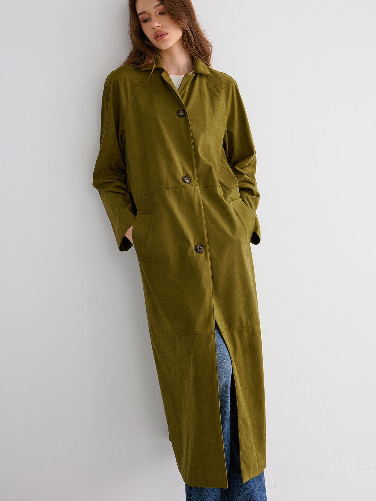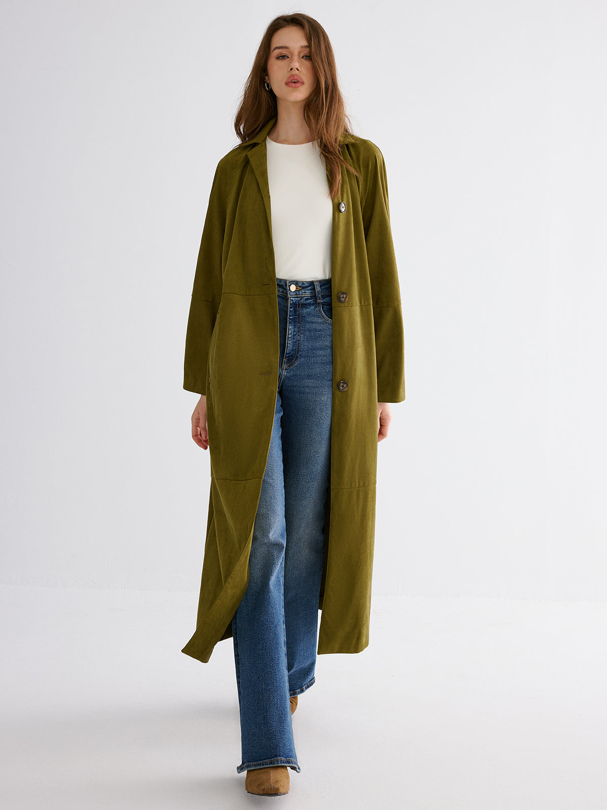 a-none,clothing,coll:outerwear,coll:tops,coll:trending,coll:vintage_fabrics,fall,faux leather,fff,green,in_six_month,inner sample,long sleeve,long top,metal detail,minegence,non-stretch,not_low_sales,oa250804079,outerwear,photo_model,regular,shift,trench coats,warm,winter,women